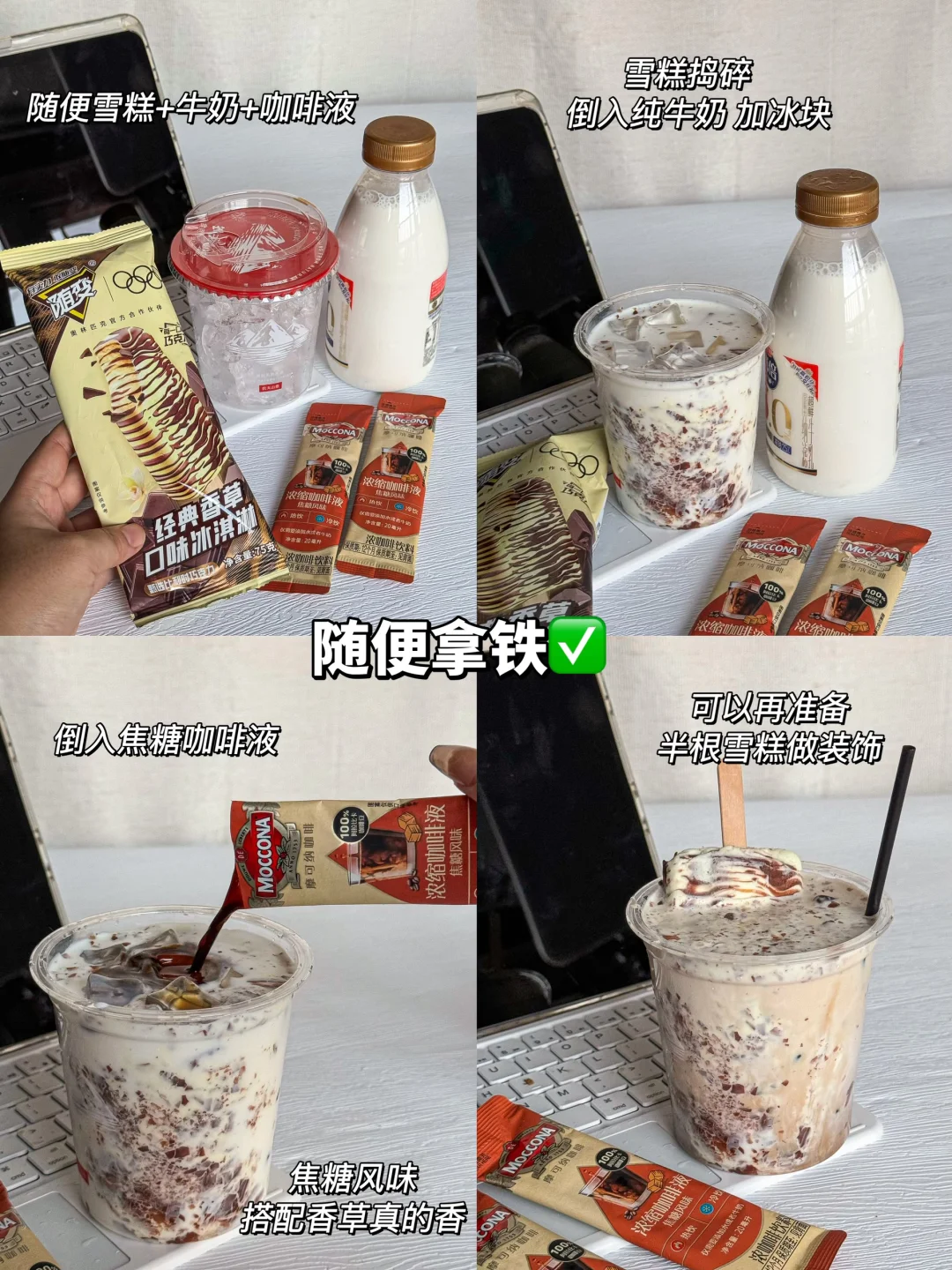 咖啡液是焦糖风味的 直接加纯牛奶就hin好喝