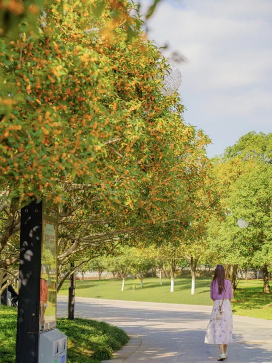 老苏州人说:“这里藏着苏州最正的秋味” 一入园, 秋风先至, 桂香劈头盖脸涌来...... 风过时, 金色花雨落在公园长椅上, 我想每个在桂花公园路过的人 都会变成“带香的人” 恰似李清照写的: “暗淡轻黄体性柔,情疏迹远只香留” - 📍桂花公园 -