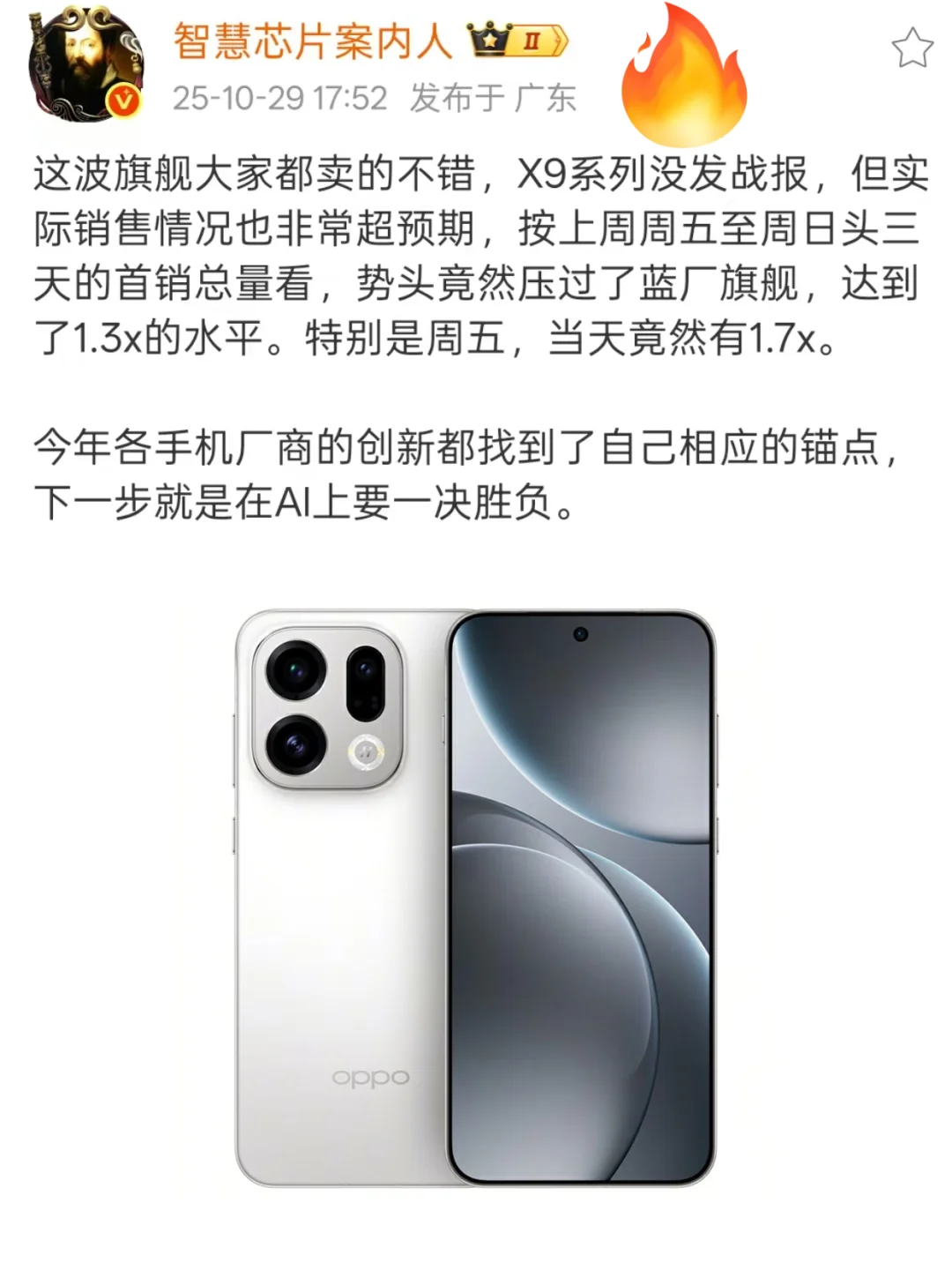 findx9太火了吧,oppo销售一天就卖了46台