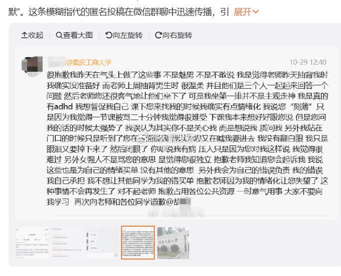 匿名吐槽大学老师女生道歉 好,热闹[嘻嘻]