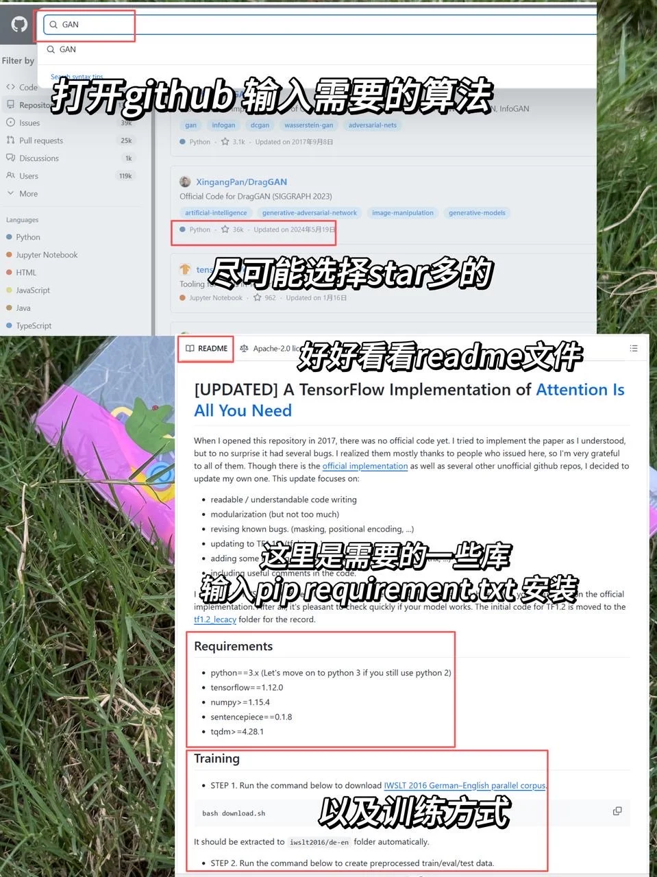 然后你就可以把代码下载下来,pip install requirement.txt配置环境了,一定要记得先cd到文件夹中,如果卡住了就换清华或者阿里源。建议下载conda配置一个虚拟环境,可以减少很多问题,很容易因为一些库版本冲突导致失败