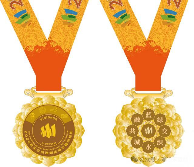 经过赛事组委会的精心策划和设计,2025京东北京通州运河半程马拉松完赛奖牌正式亮相——
