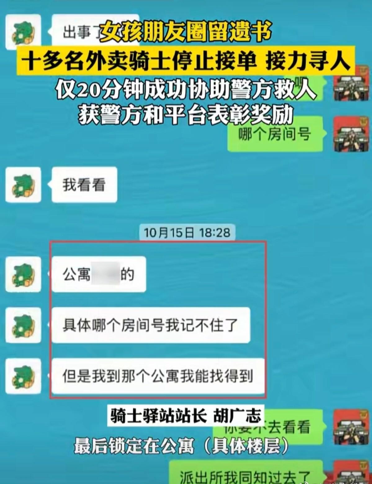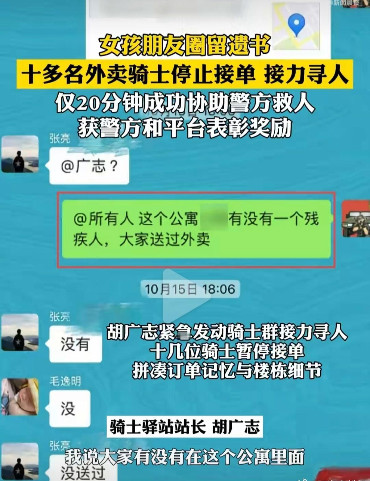 更让人感动的是,整个站点的骑士都停下来帮忙,接力寻人——他们本可以赶着去送下一单,多赚点钱,但却选择为一个陌生女孩的生命按下暂停键。 这哪里是送外卖,这分明是在送出这座城市的温度。这位外卖小哥那句“比送多少单都有意义”,说得太对了。 有时候,我们不经意的一点善意,对别人来说,可能就是照亮黑暗的全部光亮。