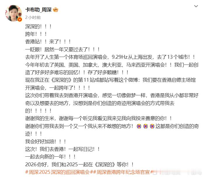 周深的巡演将在启德体育场连续开展两场,这样的安排既体现演出热度,也让不同时间的观