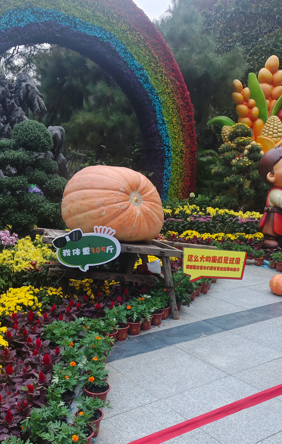 洛阳市第十八届王城金秋菊展接近尾声,菊展期间,园区一重达305斤的金黄色大南瓜,凭借圆润饱满的外形,成为本次菊展的“明星展品”,引得游客纷纷驻足围观、拍照留念。