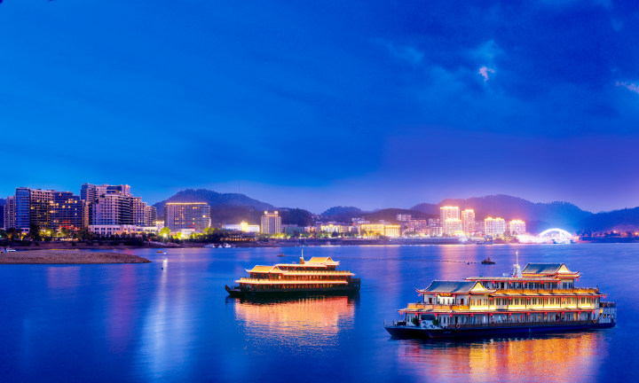 “百年修得同船渡”浪漫主题游线,在中心湖区夜游码头,乘坐梦想系列、千旅之星系列等豪华游船,共赴湖面留影旅途心动记忆瞬间,打卡湖上最美婚姻登记中心,在绿水青山见证下感受“百年修得同船渡”的独特魅力。全程约2小时。