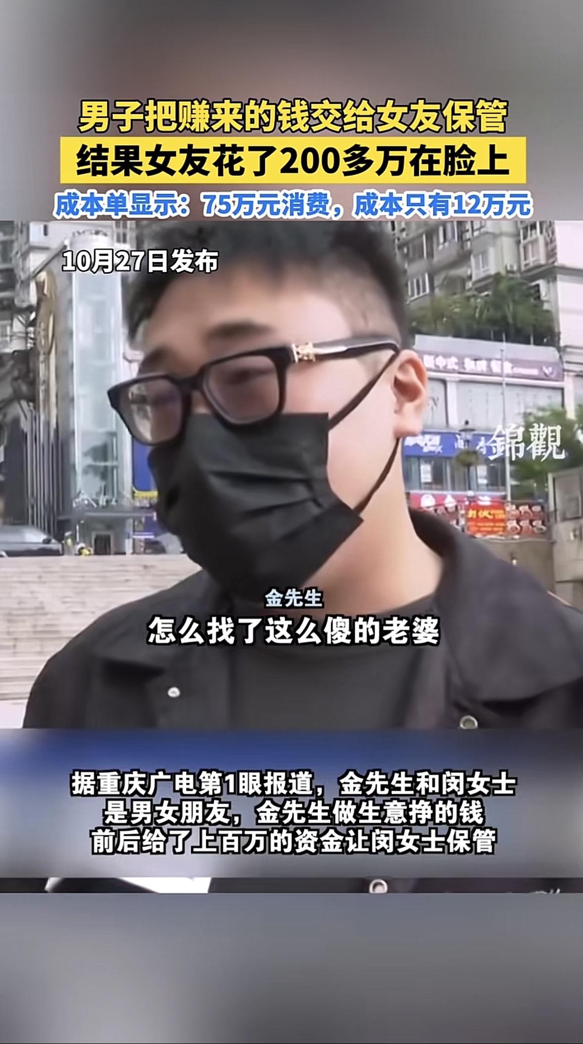 重庆,男子把赚来的钱全部交给女友保管,前后给了上百万,男子生意出问题后,管女友要20万周转,谁知女友却说手上没钱了,男子一问才知道,女友光在美容保养上就花了200多万,男子搞到了成本单,发现女友一笔75万的消费,成本只有12万,明显是被美容院坑了,男子气得管美容院的人要说法,女友却说对方是她朋友,不想让男子把事情闹大,男子听后直呼女友太傻了! 金先生(化名)急着周转生意,找女友闵女士(化名)要回自己存在她那的钱时,心一下沉了 ,当初交过去的数十万乃至上百万积蓄,全没了。 追问之下他才知道,三年里这些钱全被闵女士花在了美容和医美上,算下来总消费超 200 万。 他当初把钱交给闵女士,是出于信任,也想着两人以后要一起规划生活,没设防,连独立账户都没留。 闵女士一开始没觉得有问题,直到后来被美容店店主李某某(化名) “缠” 上,才一步步陷进去。 李某某先是天天找闵女士聊天,送些小礼物拉近距离,等熟了就开始推荐高价医美项目。 “这个是顶级产品,做完效果马上能看见”“你这情况就得用最好的方案,不然没效果”,这些话翻来覆去说,闵女士听多了,又觉得对方 “够朋友”,就一次次下单。 直到金先生找到一张项目成本单,才发现里面的猫腻 , 一笔标称 75 万元的医美服务,实际成本只有 12 万元。 这么大的差价,明摆着是虚高定价加话术诱导,金先生拿着这张单子找李某某交涉,最后谈成和解,对方退还 56 万元。 这笔钱虽没补回全部损失,却让他摸清了维权的路:留好凭证、抓准关键证据,比光生气管用。 闵女士其实也是受害者,她被 “变美” 的话术裹着,没多想成本和必要性,连详细合同都没要过。 金先生更没想到,自己对感情的信任,最后会变成经济上的窟窿。 这件事里,藏着最实在的教训,把大额资金交给非婚配的伴侣长期保管,风险太大,重要的钱得自己留好凭证,明确用途,别让感情完全盖过理性。 还有医美消费的坑,很多人都容易踩,听到 “顶级”“显著效果” 这类话要多留个心眼,签约前一定要要产品成分、成本明细,最好找专业医师问问,别被 “朋友式” 的热情忽悠着下单。 像闵女士这样,连成本都没问过就花 200 万,最后只能追悔莫及。 金先生能要回部分钱,全靠他保住了那张成本单,要是遇到类似情况,别慌着吵架,先把票据、聊天记录、合同这些证据保存好,找工商、消协投诉,必要时走法律途径。 和解能快速止损,但也别放弃合法维权的机会。 现在闵女士既愧疚又后悔,金先生也为信任错付感到失望。 金先生从李某某处获取的医美项目成本单,撕开了美容机构的欺诈真相:标称 75 万元的服务,实际成本仅 12 万元,价格虚高近 6 倍,明显是通过夸大成本、虚假宣传误导闵女士消费,属于典型的消费欺诈。 根据《消费者权益保护法》规定,消费者遭遇欺诈时,有权要求经营者增加赔偿损失,增加赔偿的金额为接受服务费用的三倍。 闵女士作为被误导的消费者,不仅可主张退还虚高的费用,还能依法向该美容机构索要对应服务费用的三倍赔偿,以此弥补自身的经济损失。 这件事不只是两个人的感情裂缝,更提醒所有人:信任值得珍惜,但不能拿财务安全当赌注。 感情归感情,金钱要算清,用合同和凭证为自己设防,才是对彼此都负责的做法。 而对医美行业来说,这样的虚高定价也该管管,别再让 “变美” 变成 “变坑”。 对此,你有什么看法呢? 信息来源:西藏商报