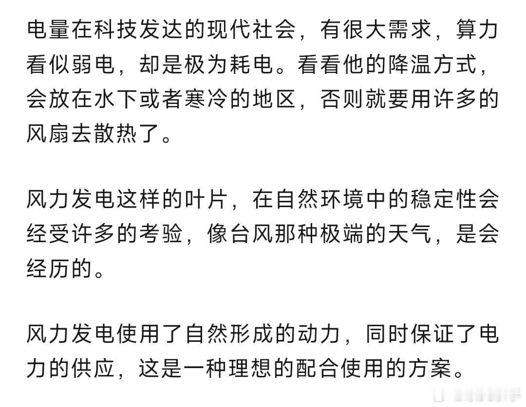 电量在科技发达的现代社会,有很大需求,算力看似弱电,却是极为耗电。看看他的降温方式,会放在水下或者寒冷的地区,否则就要用许多的风扇去散热了。