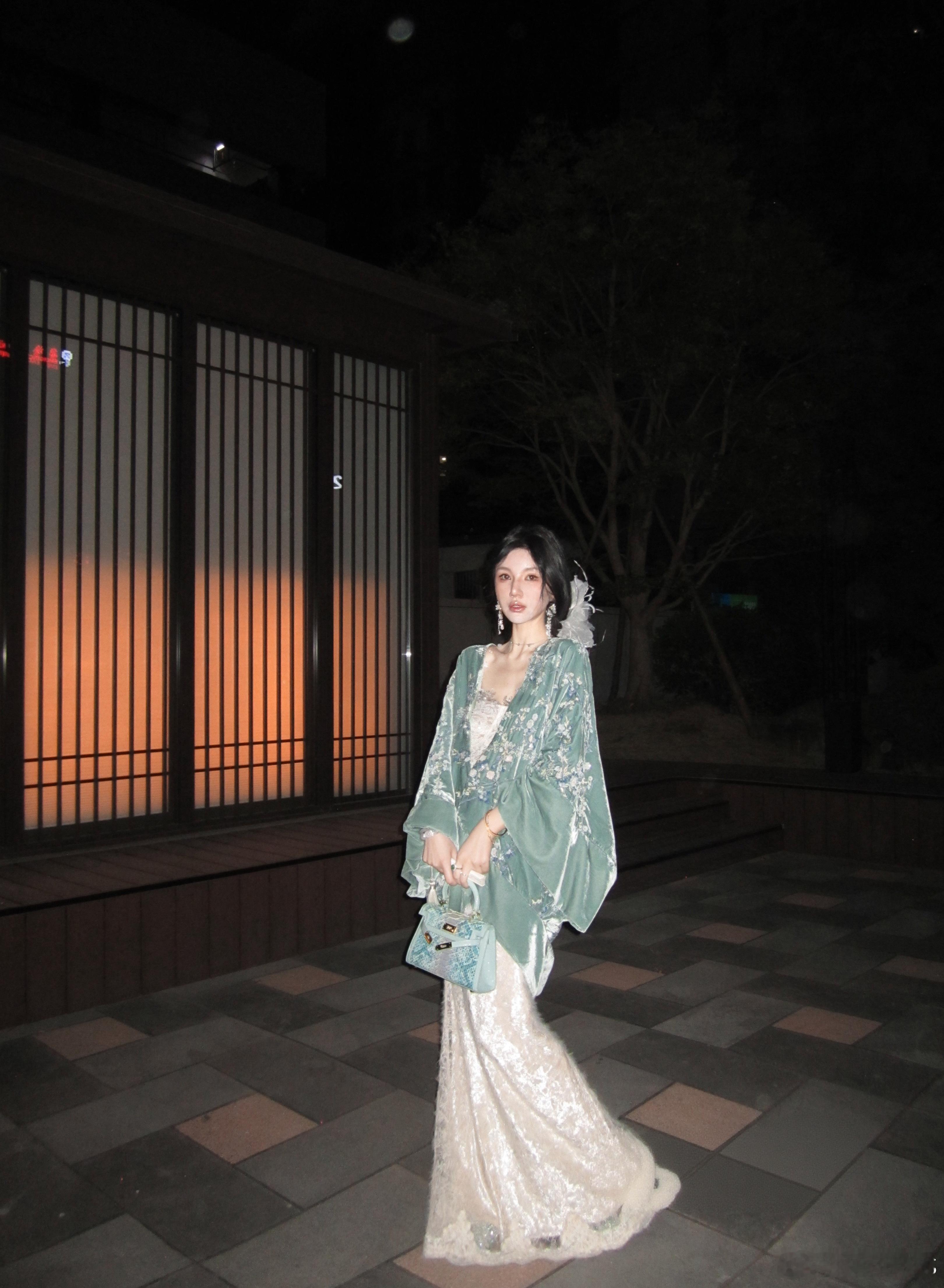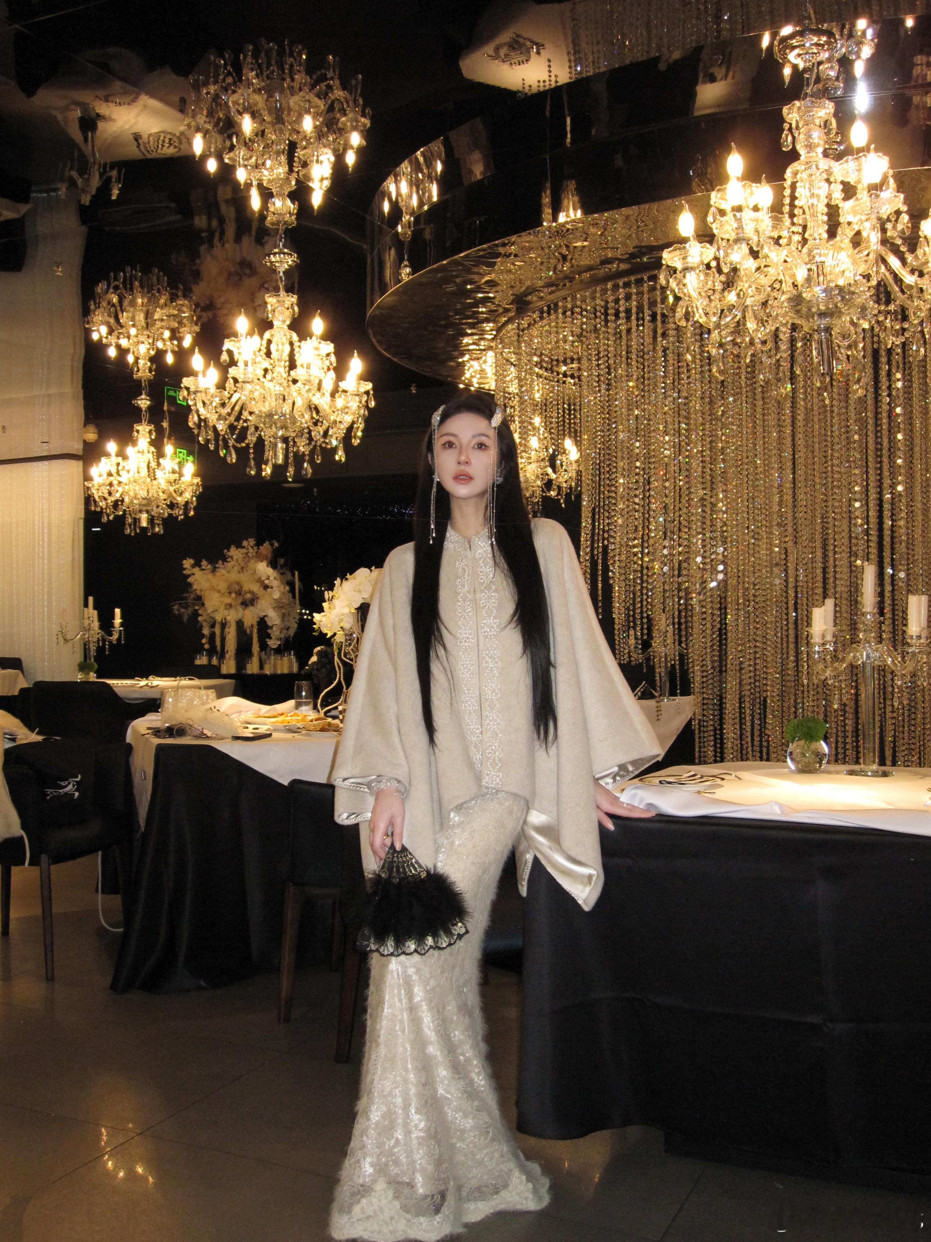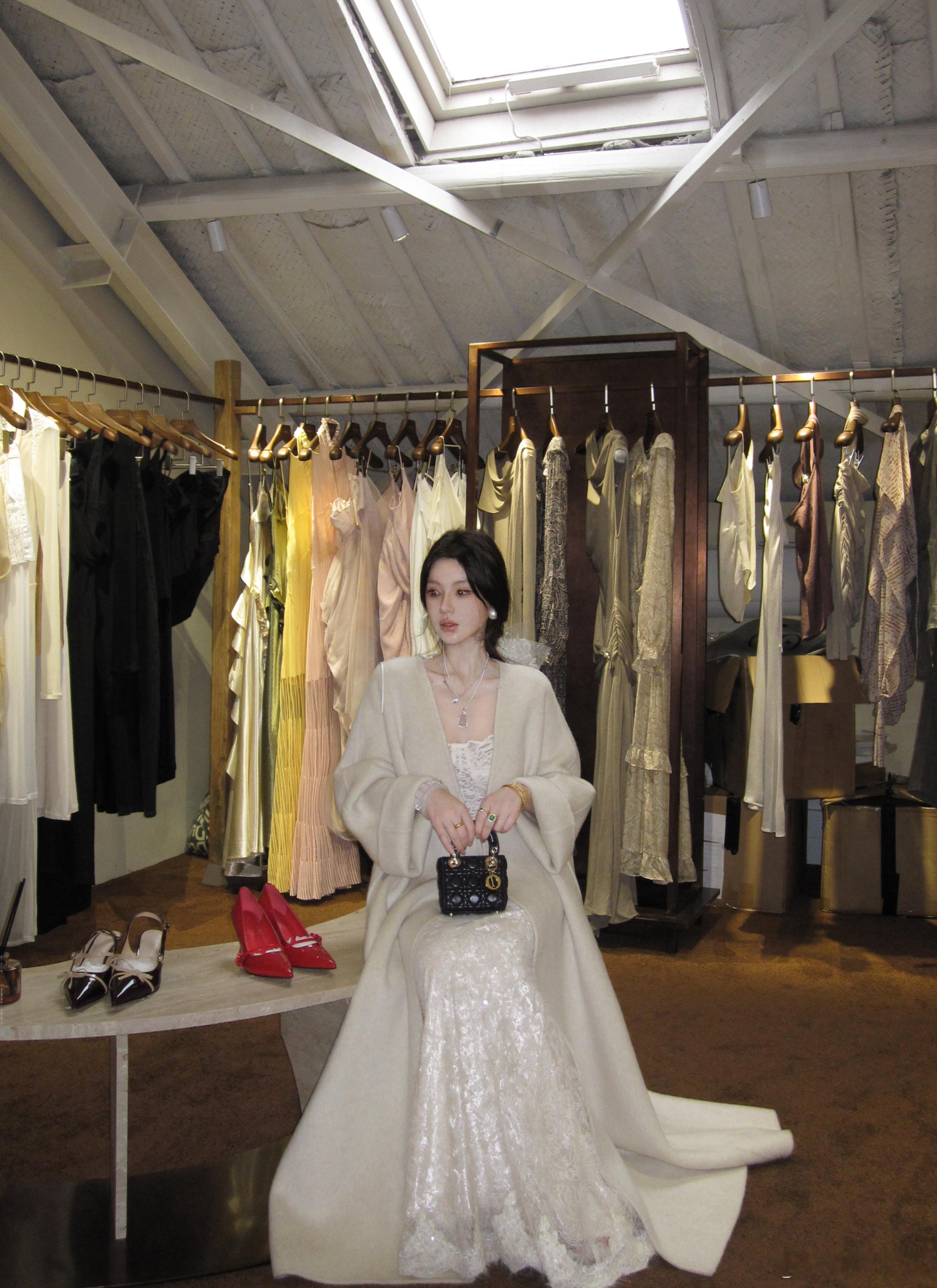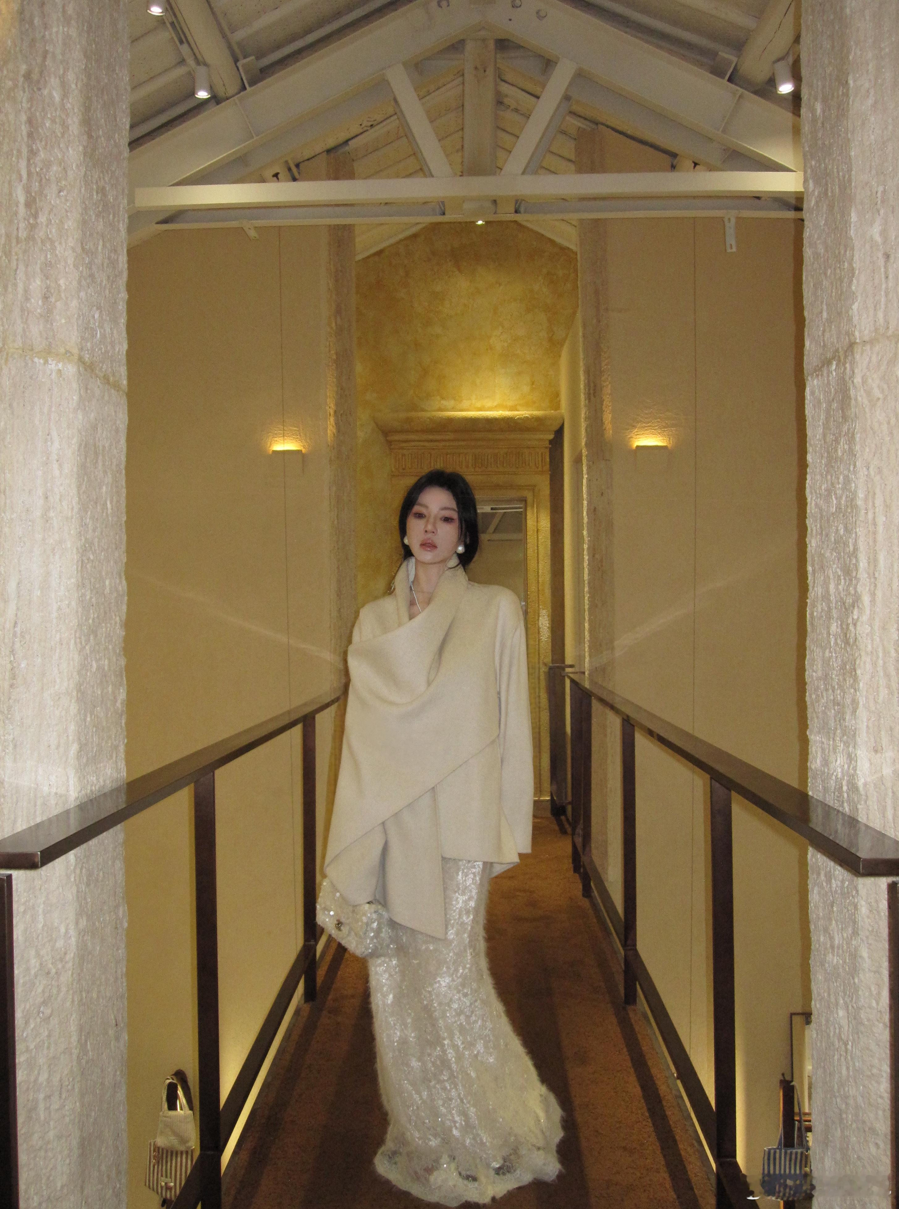 羽毛纱的篷松柔糯、珠片的璀璨闪烁✨丝绒的细腻垂坠相互交织,裙摆股线蕾丝花边如精致流苏,为半裙增添了浪漫柔美感,让造型瞬间蜕边为穿搭的“吸睛点”💡