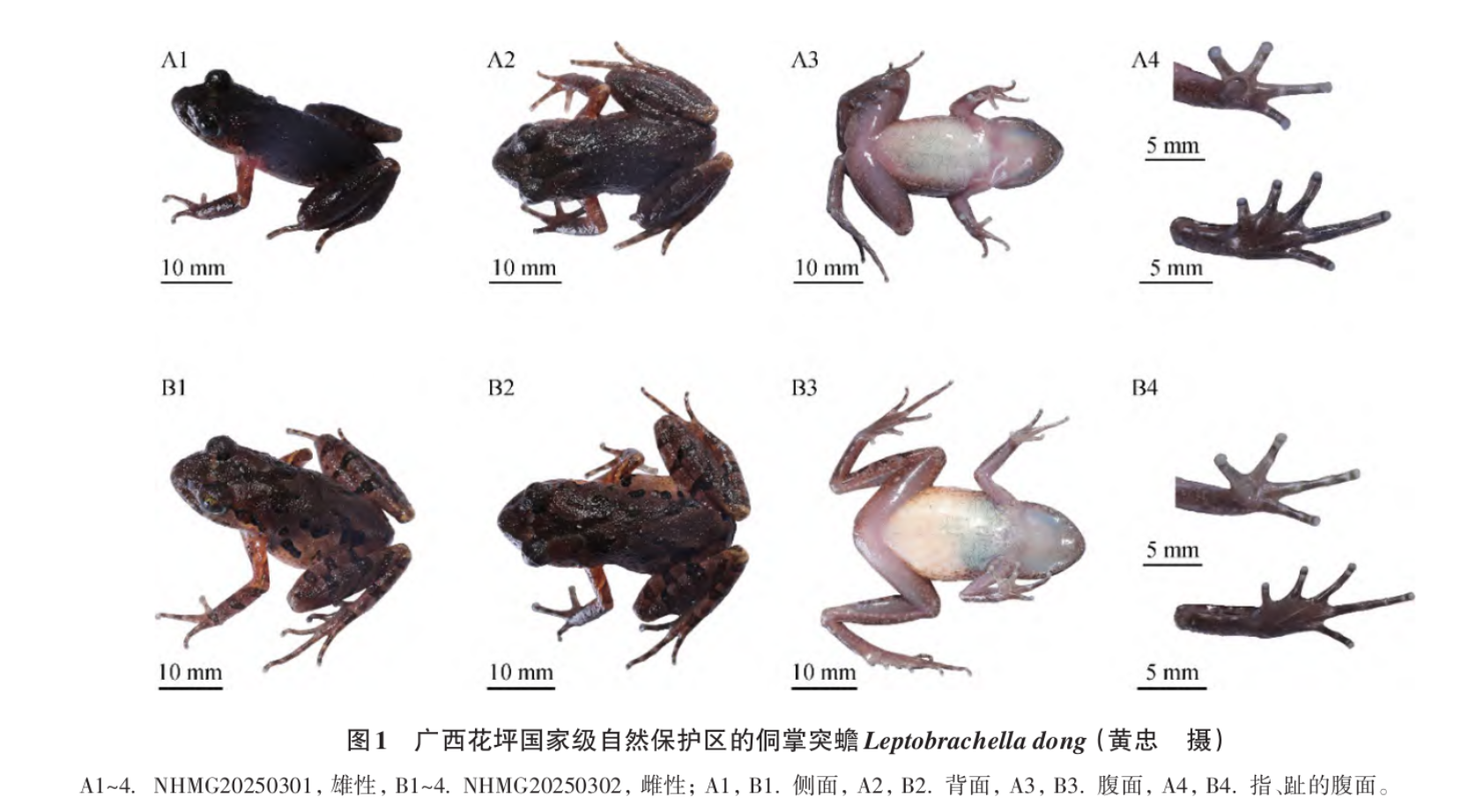 近期,广西花坪国家级自然保护区综合科学考察团队在保护区境内发现广西新记录物种——侗掌突蟾,其研究成果在国内核心期刊动物分类学杂志《四川动物》刊发。