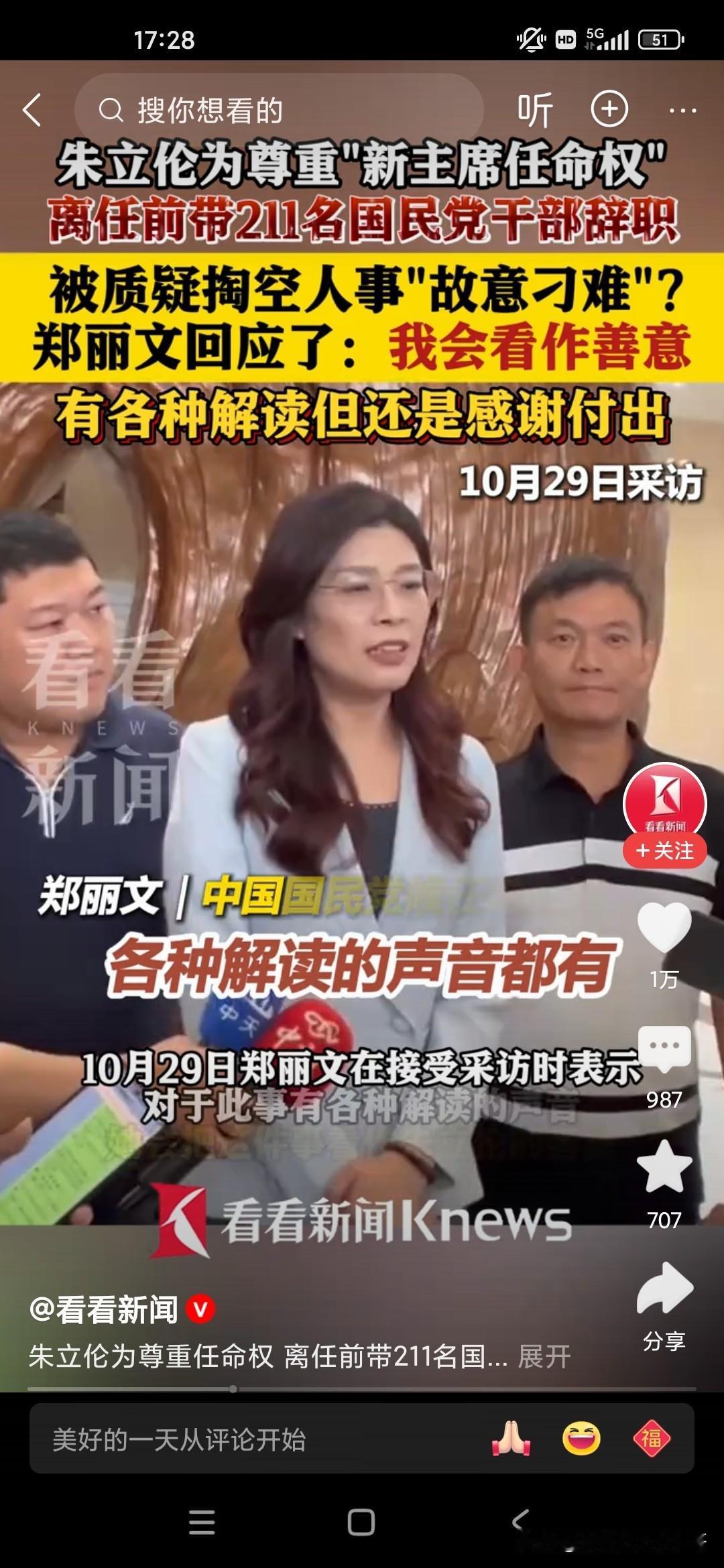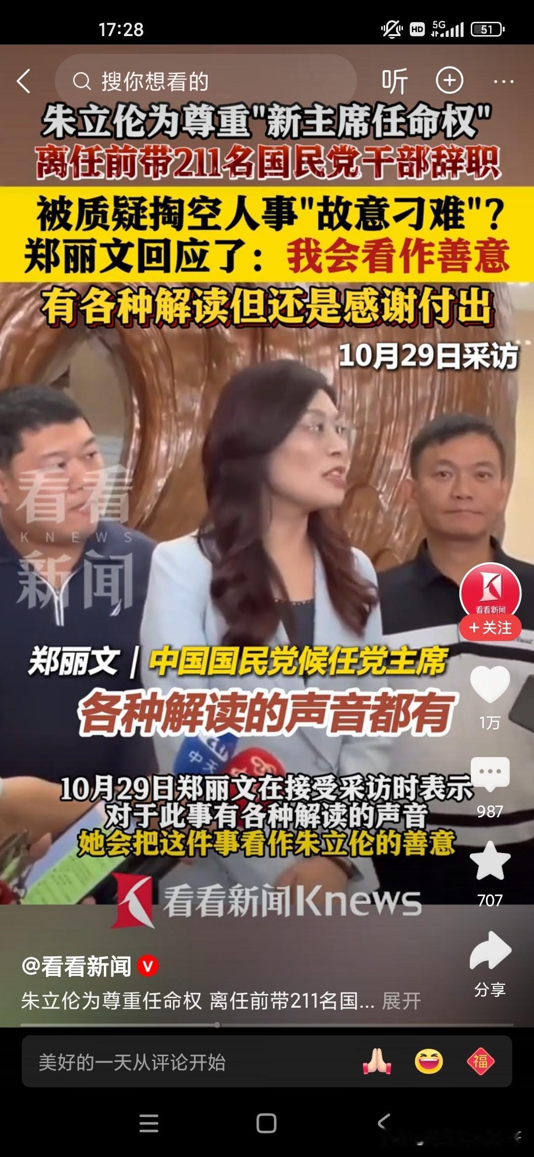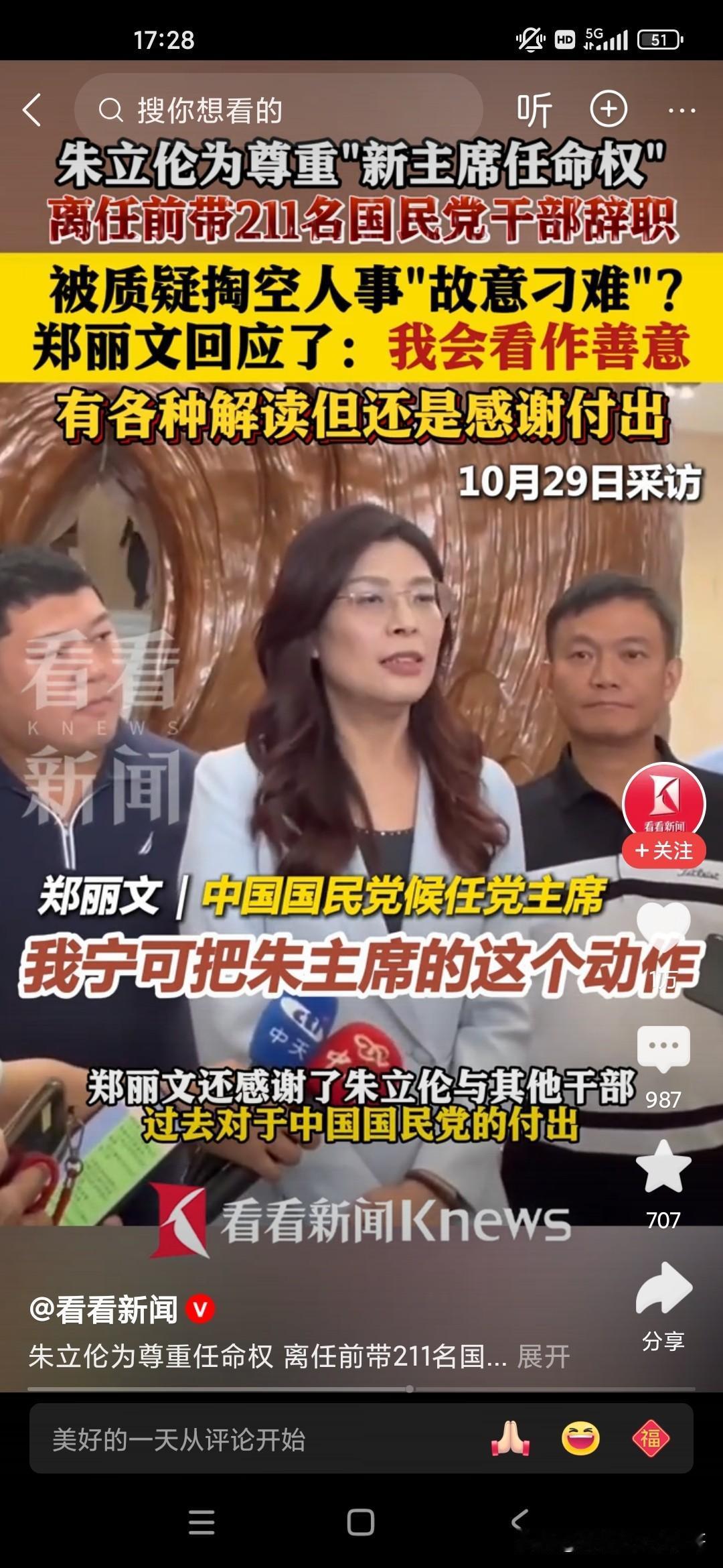 虽然上一次台湾政论家邱毅说过我们不要对郑丽文抱有太大的希望,但是我觉得有的时候历史的功绩就在一瞬间的决定,也在于偶然事件的爆发,像现在国民党主席朱立伦要求200多名政府官员全部辞职,就是为了给郑丽文一些压力,因为郑丽文以前曾经放言说要收拾这个民进党,包括台独特别厉害的一些人士啊,他自己也声称自己从来没有想过在2028年当选为台湾地区领导人,这就说明可能在2028年之前,我们国家可能就要完成统一了,所以说她才这样说,现在朱立伦是国民党党主席,但是他对于台湾的统治远远没有说那么的牢固,现在我们也是希望岛内有一些向心力能够和我们大陆一起合作,然后尽快完成祖国的统一大业,因为在台湾很多的已经退役的国民党老兵,有的已经凋零了,有的已经去世多年了,有的已经完全糊涂了,他们最大的愿望就是早日归来,但是有些老年人因为身体不便,已经不方便坐飞机或者长途奔波了,只是希望海外的游子早日归来吧!