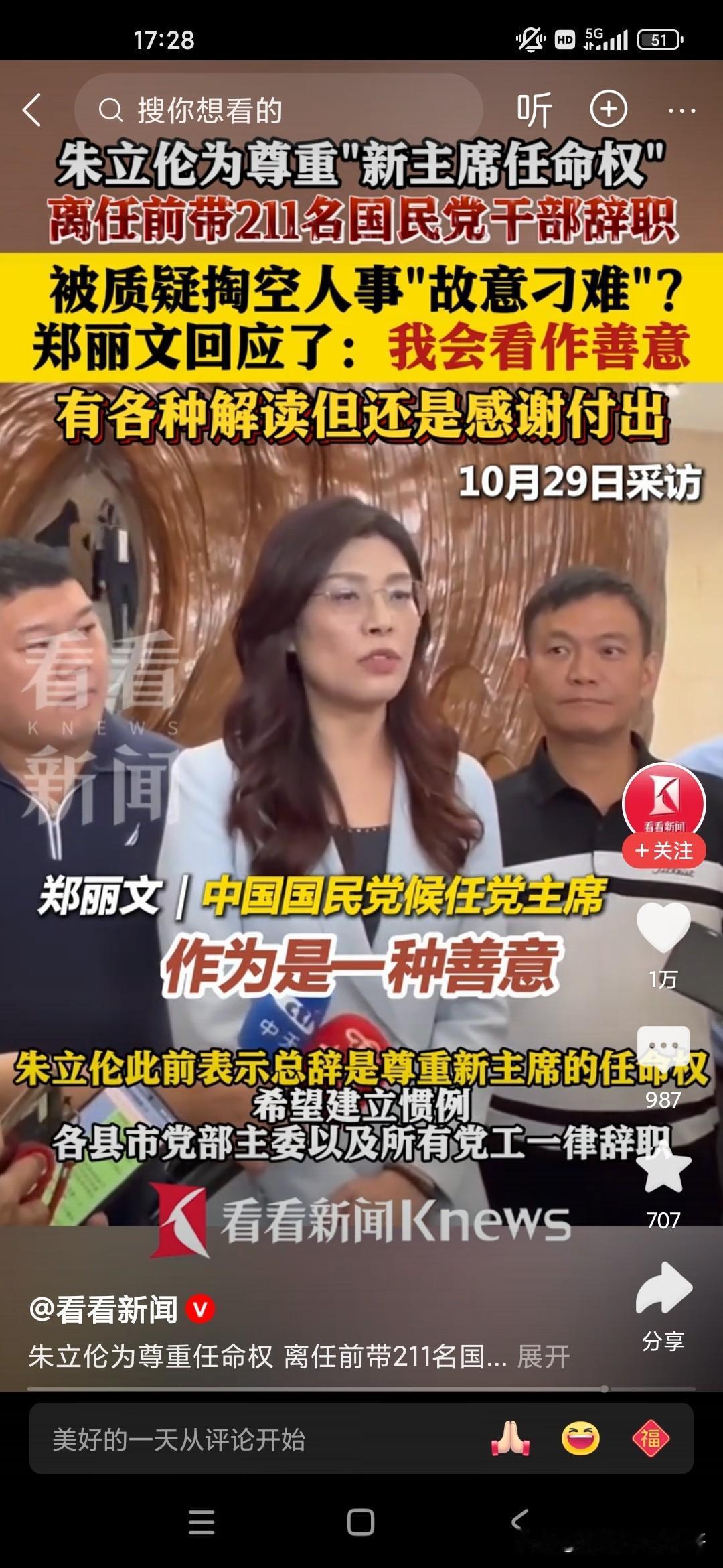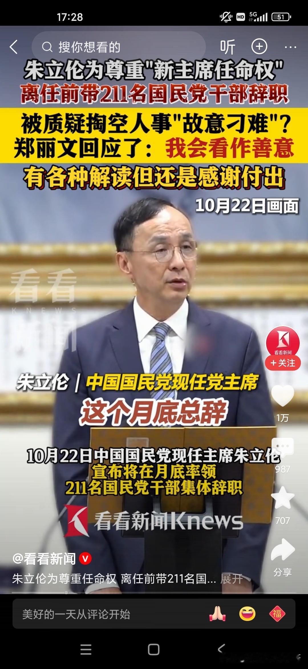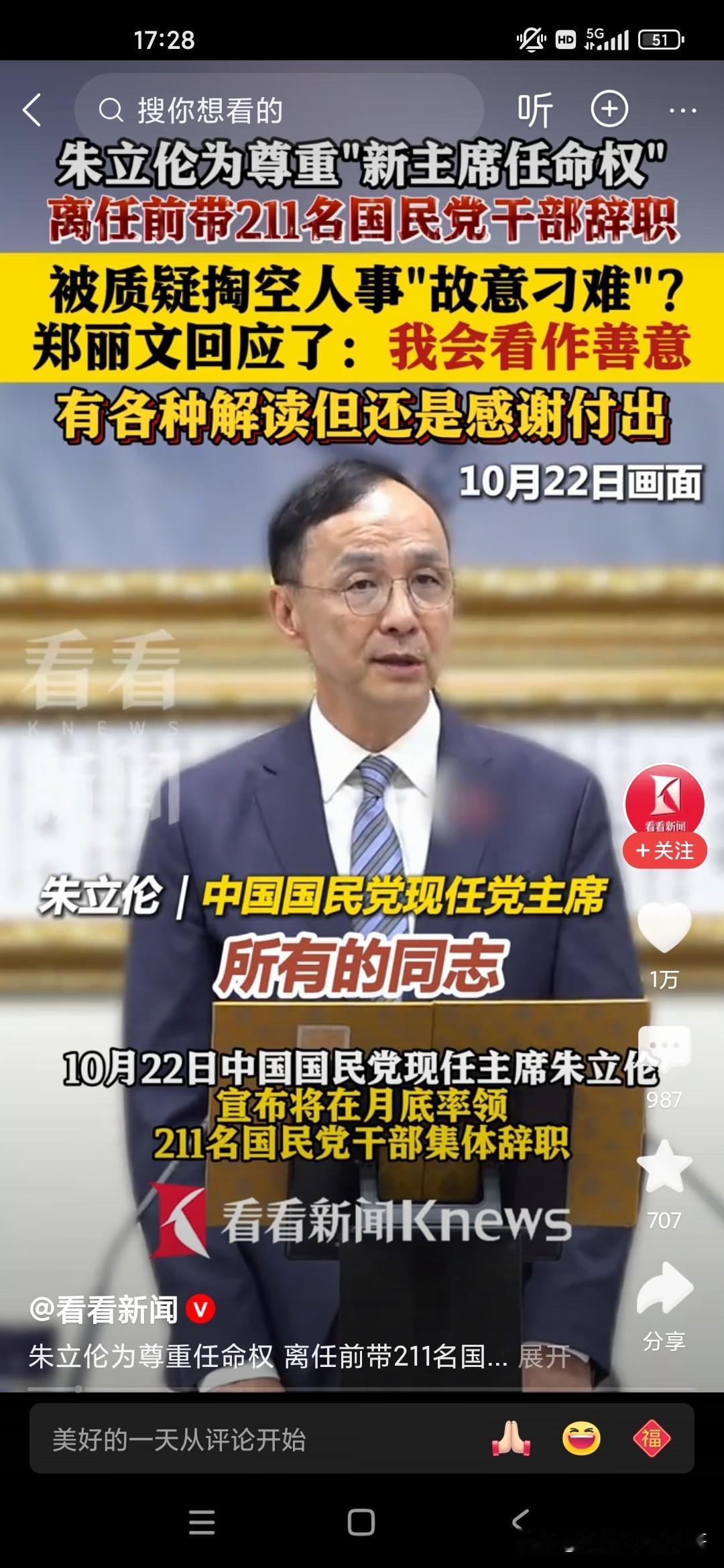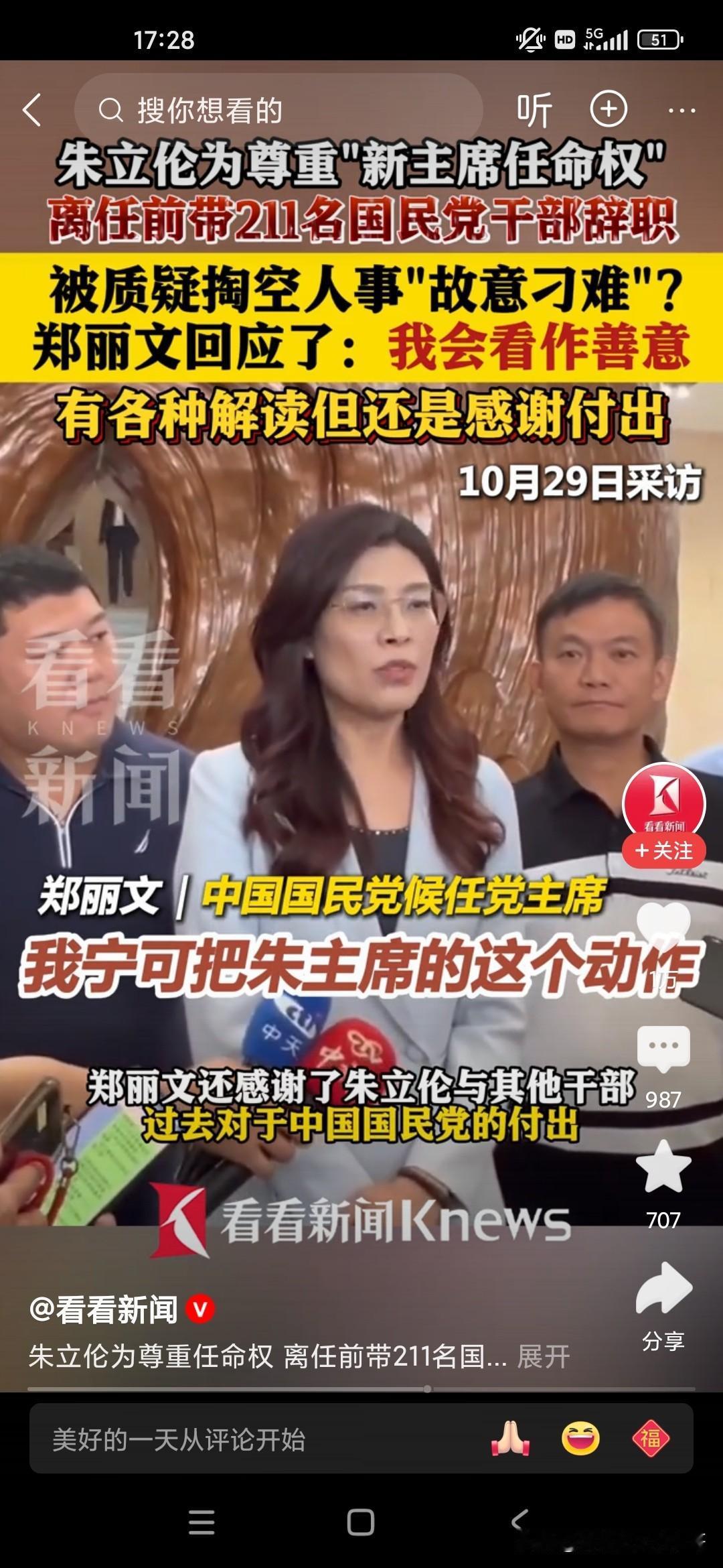 虽然上一次台湾政论家邱毅说过我们不要对郑丽文抱有太大的希望,但是我觉得有的时候历史的功绩就在一瞬间的决定,也在于偶然事件的爆发,像现在国民党主席朱立伦要求200多名政府官员全部辞职,就是为了给郑丽文一些压力,因为郑丽文以前曾经放言说要收拾这个民进党,包括台独特别厉害的一些人士啊,他自己也声称自己从来没有想过在2028年当选为台湾地区领导人,这就说明可能在2028年之前,我们国家可能就要完成统一了,所以说她才这样说,现在朱立伦是国民党党主席,但是他对于台湾的统治远远没有说那么的牢固,现在我们也是希望岛内有一些向心力能够和我们大陆一起合作,然后尽快完成祖国的统一大业,因为在台湾很多的已经退役的国民党老兵,有的已经凋零了,有的已经去世多年了,有的已经完全糊涂了,他们最大的愿望就是早日归来,但是有些老年人因为身体不便,已经不方便坐飞机或者长途奔波了,只是希望海外的游子早日归来吧!