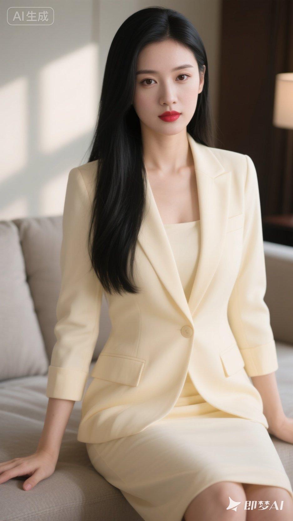 优雅职场风,米色西装套装,尽显女性魅力!