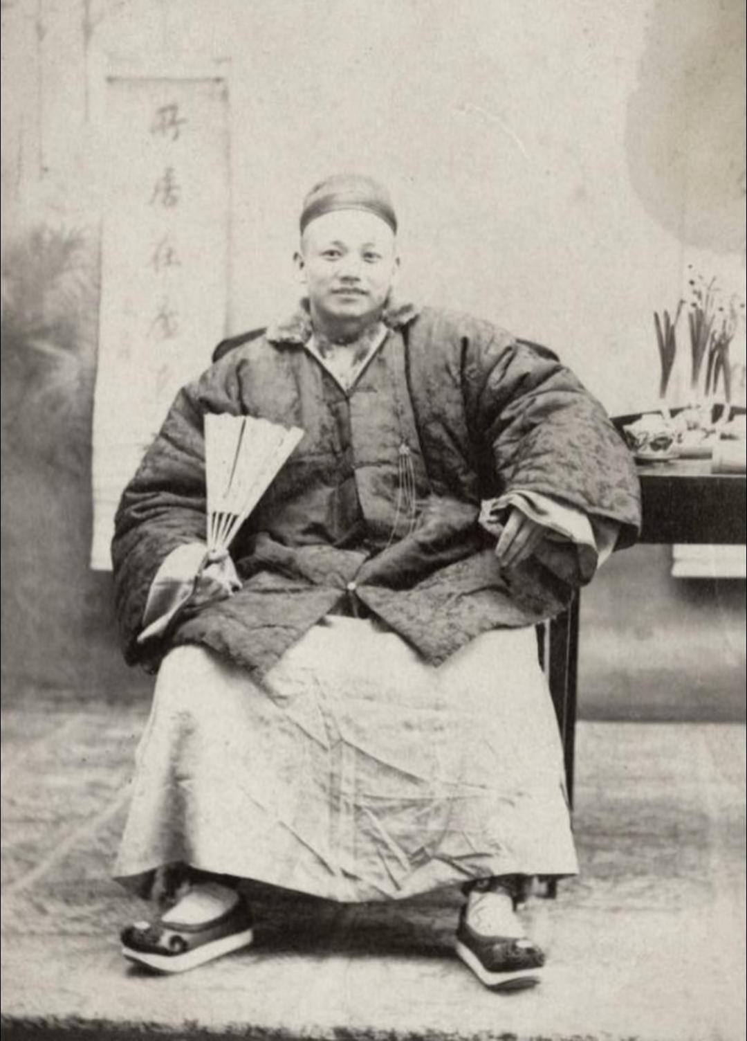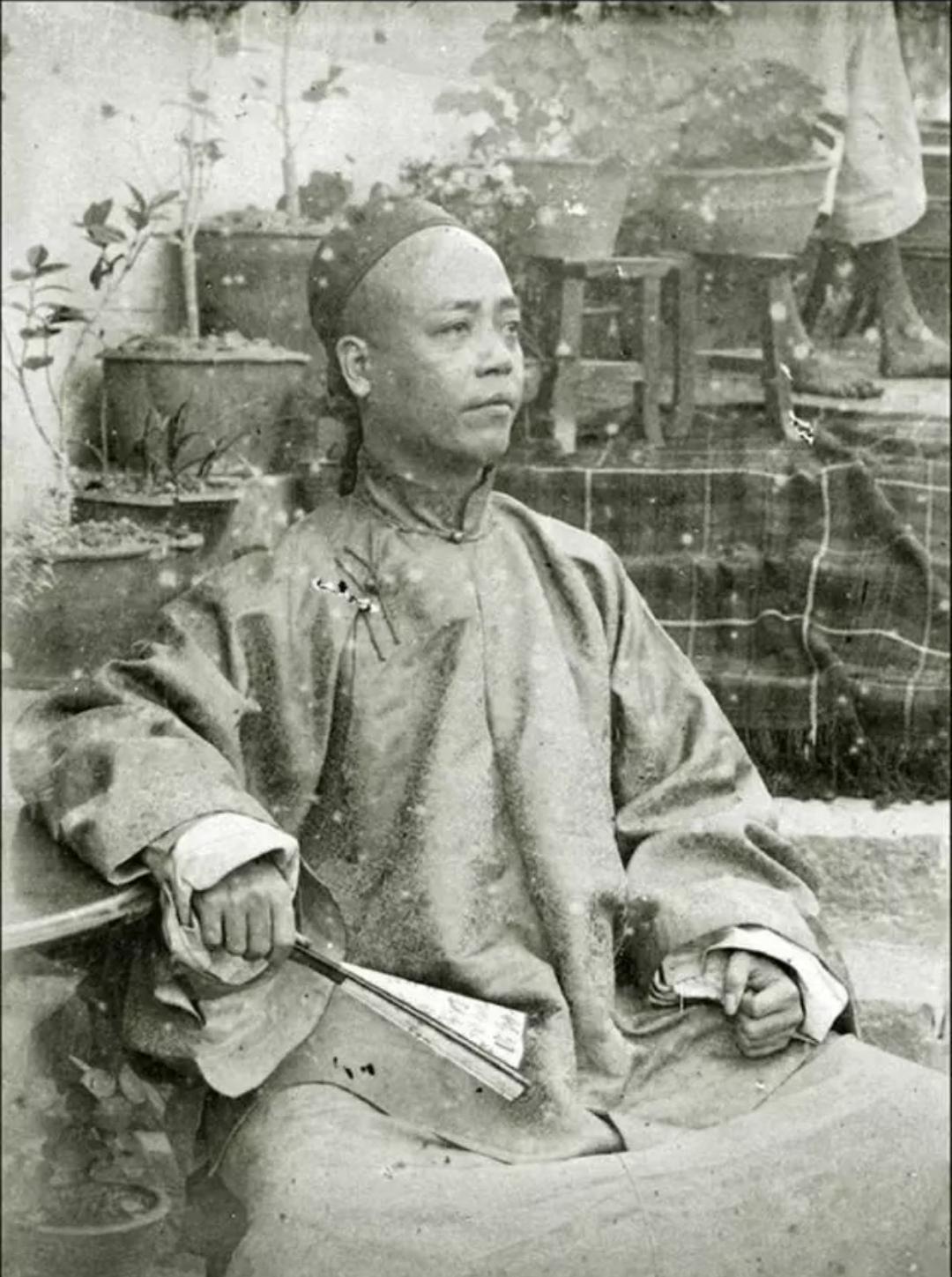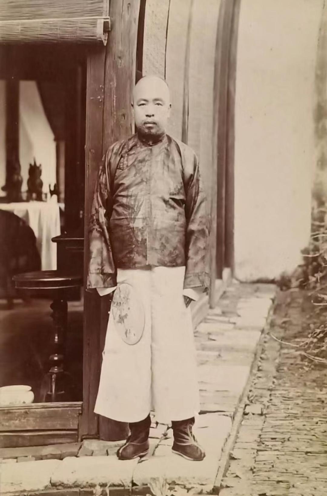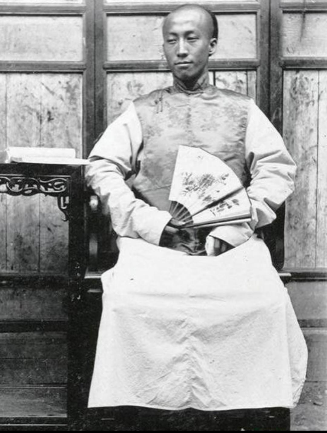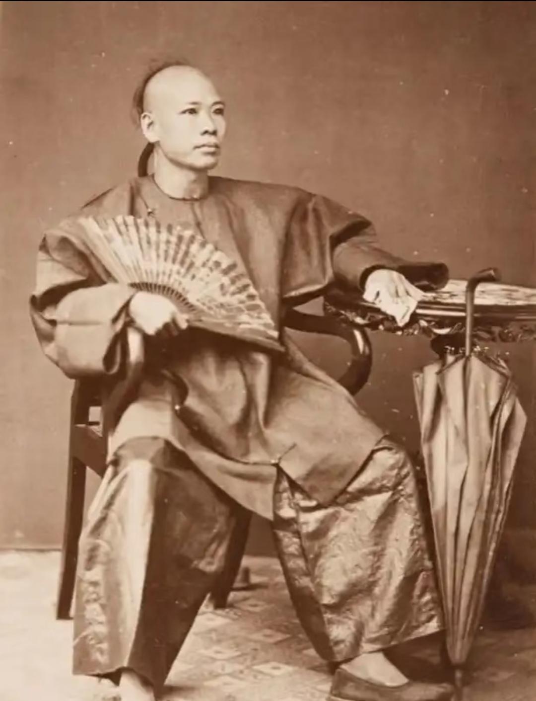 珍贵老照片 清末手中执扇的男子。扇子在日常生活中,是人们很轻便的纳凉工具,有团扇,羽扇,蒲扇,折扇……等多种多样!