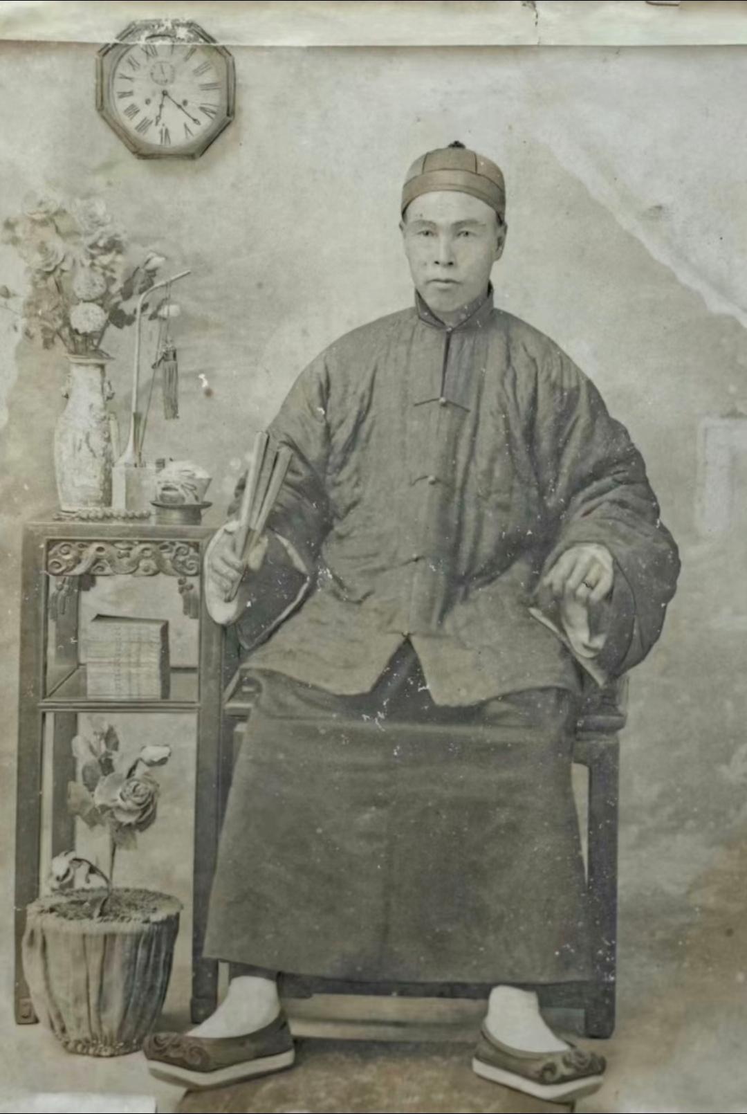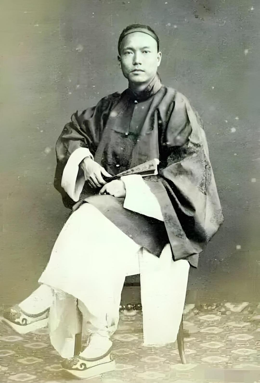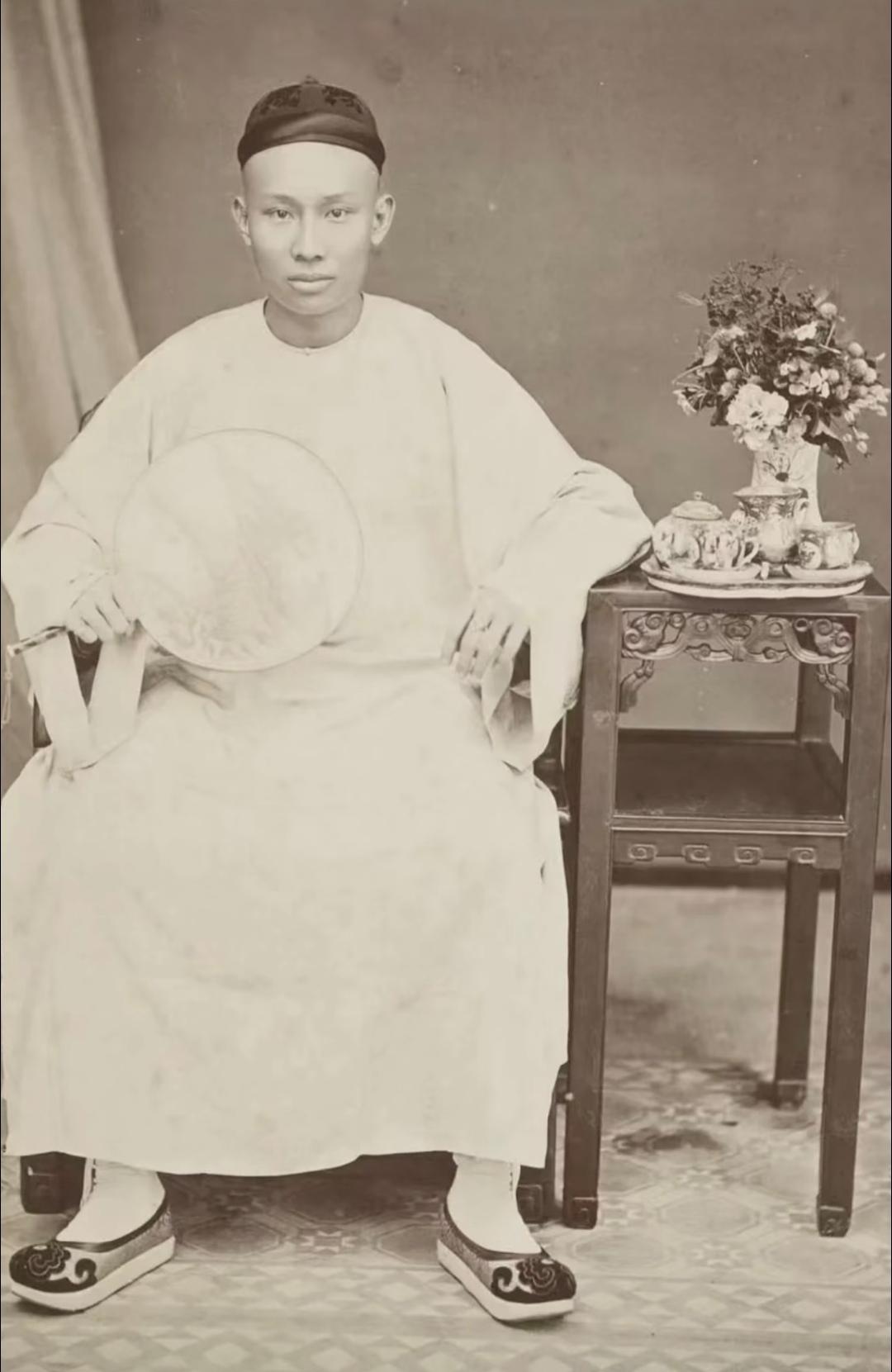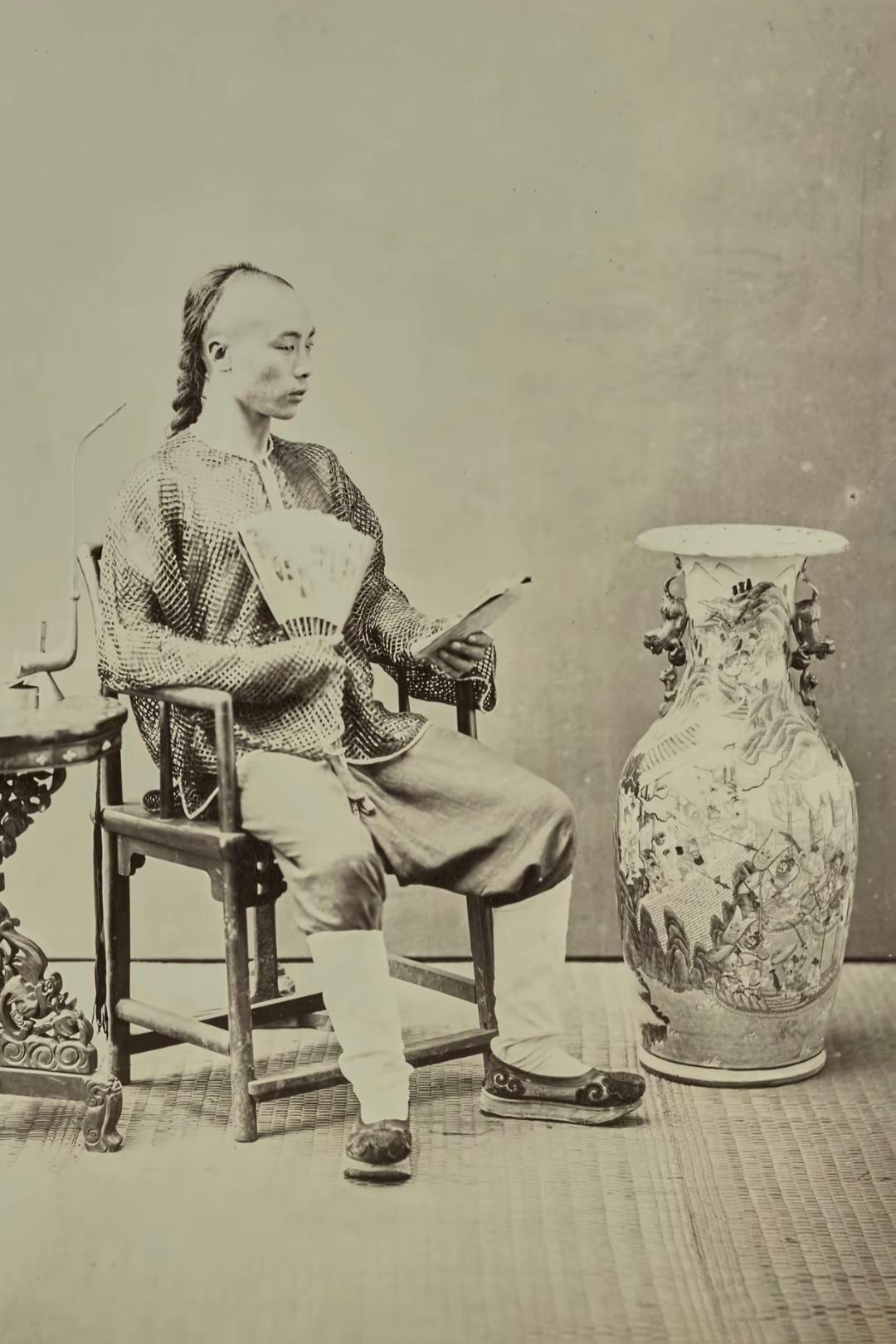 珍贵老照片 清末手中执扇的男子。扇子在日常生活中,是人们很轻便的纳凉工具,有团扇,羽扇,蒲扇,折扇……等多种多样!