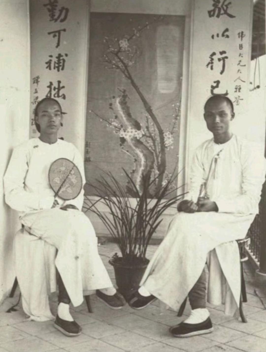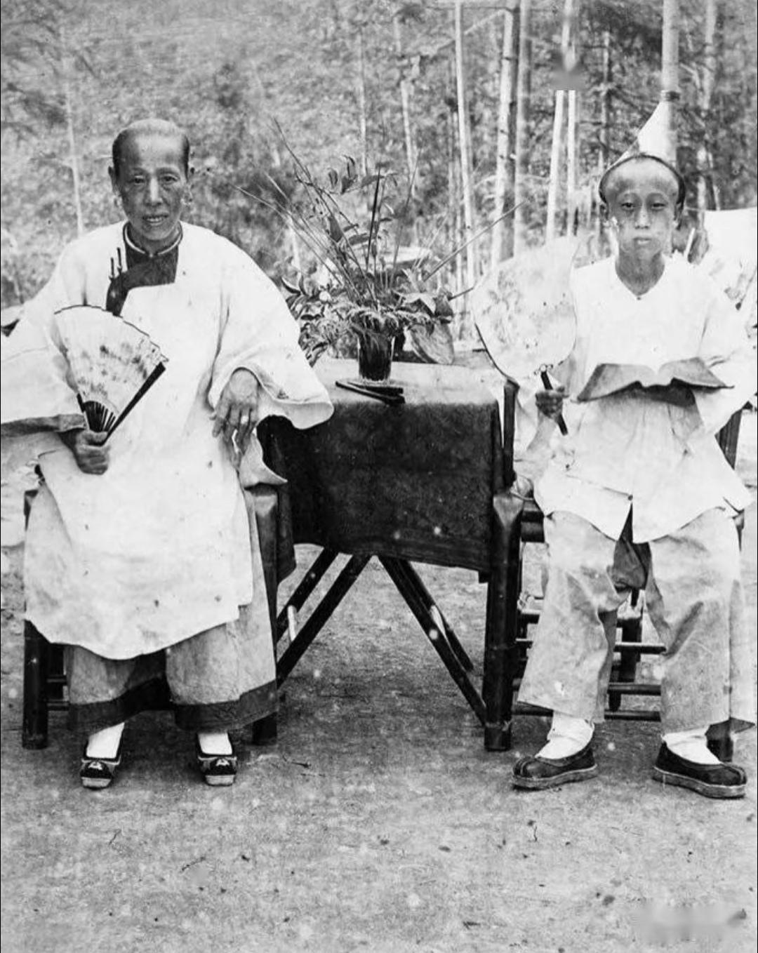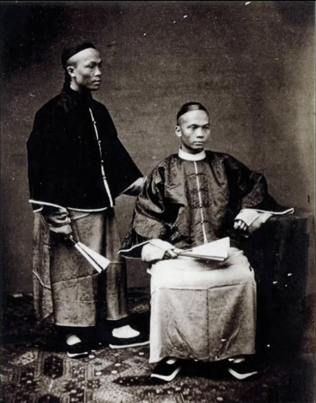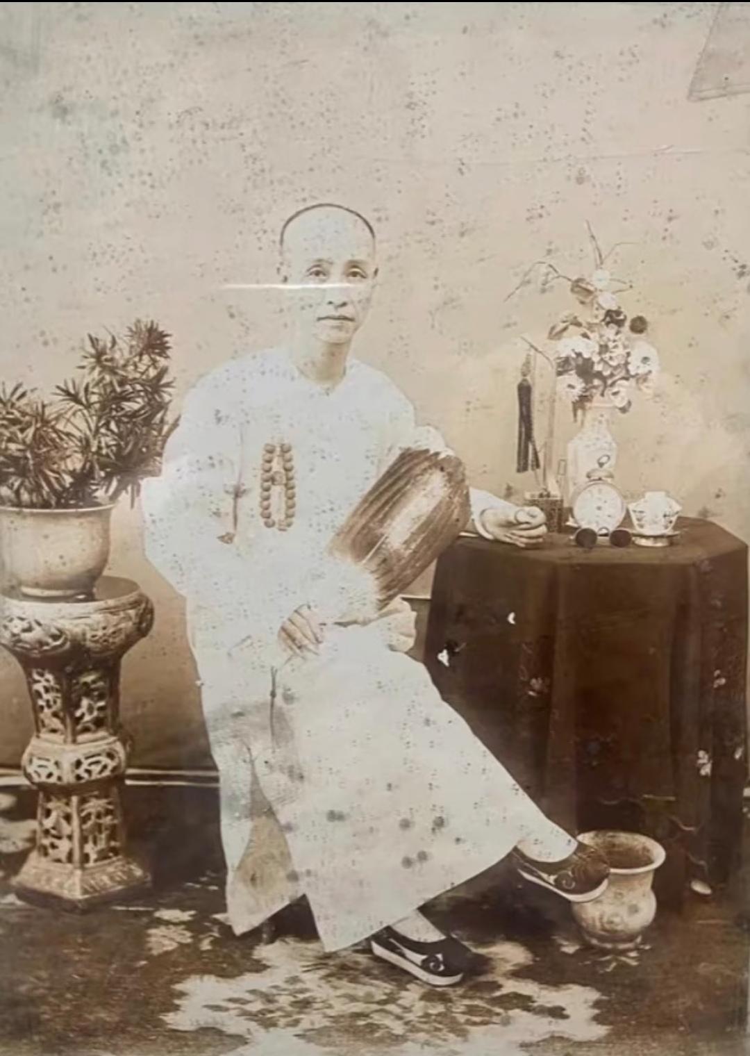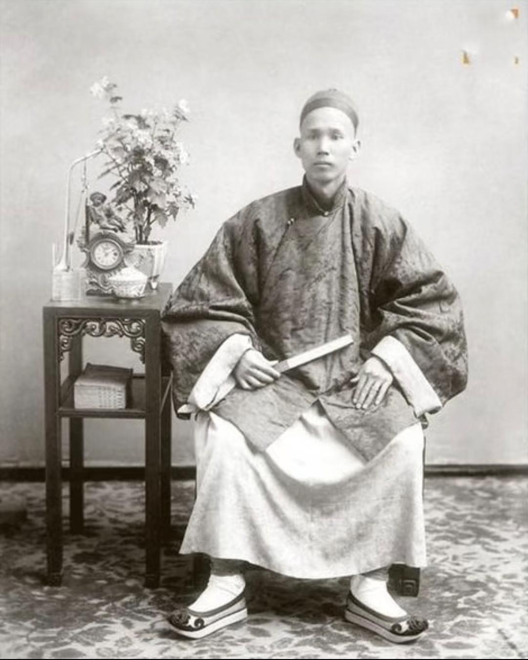 珍贵老照片 清末手中执扇的男子。扇子在日常生活中,是人们很轻便的纳凉工具,有团扇,羽扇,蒲扇,折扇……等多种多样!