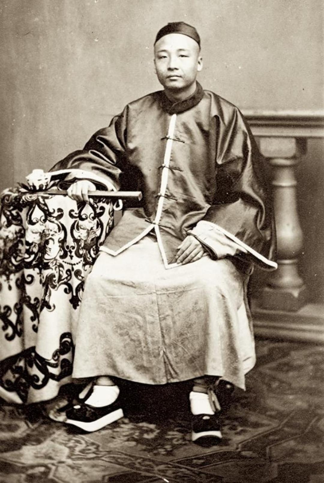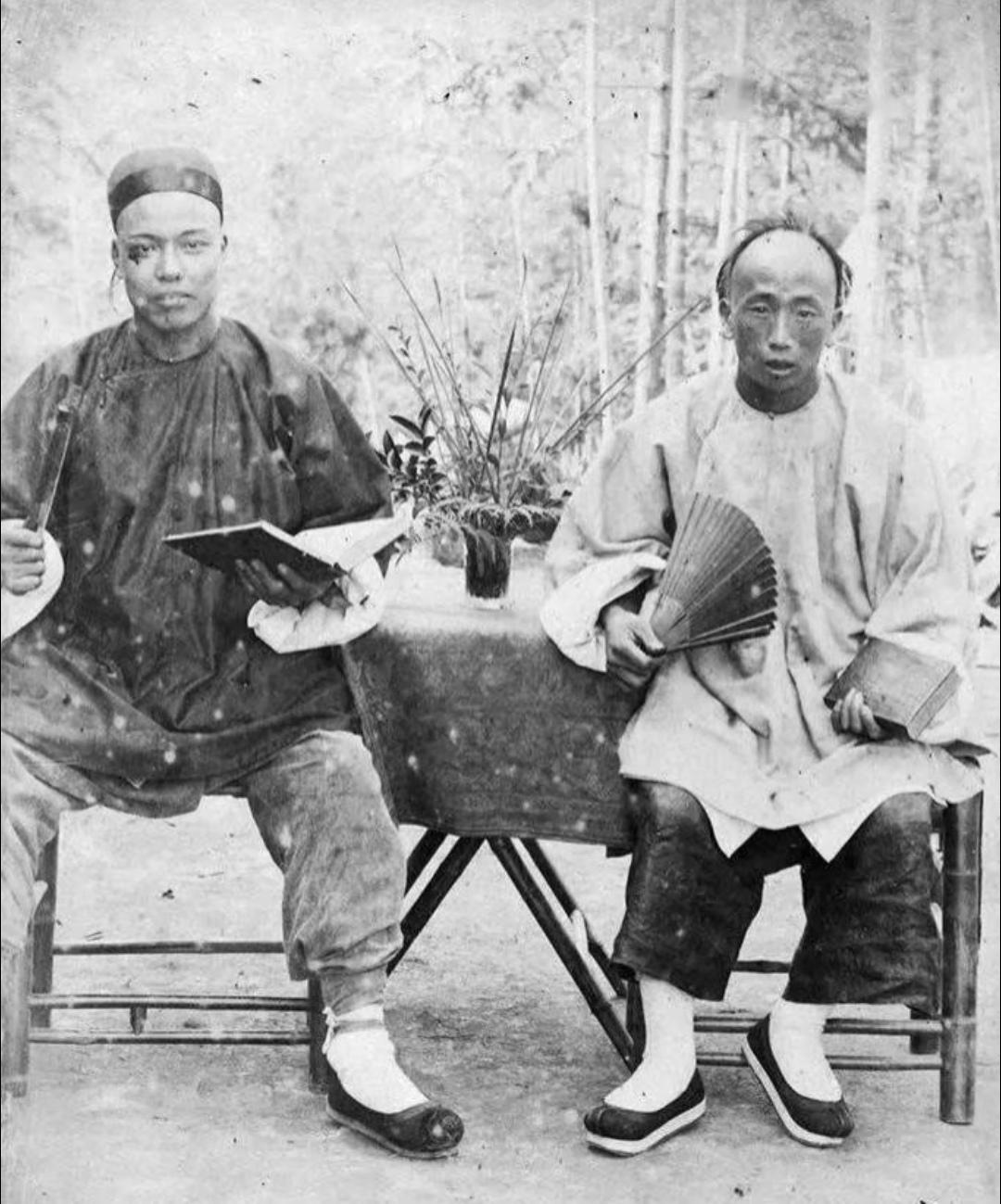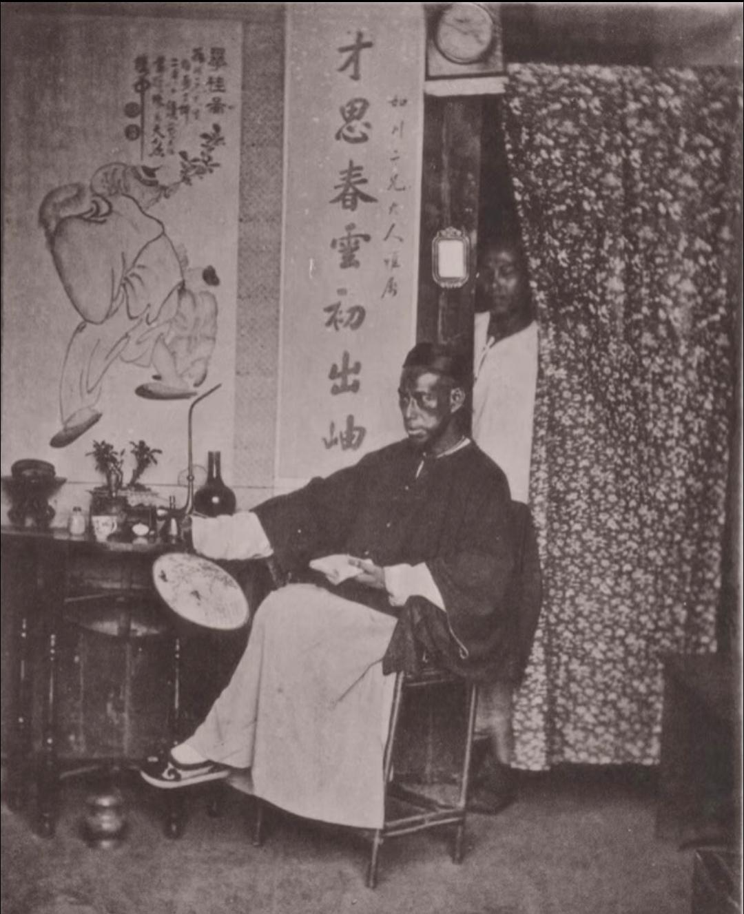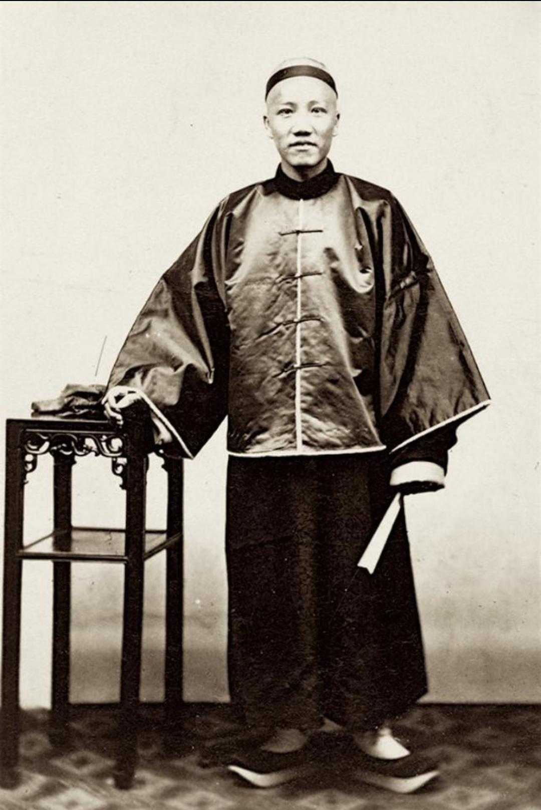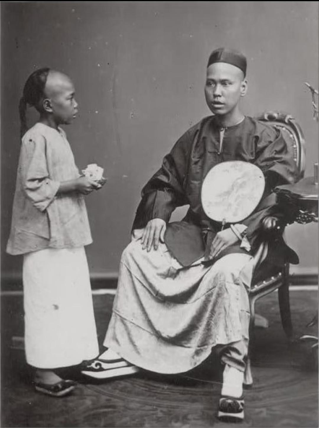 珍贵老照片 清末手中执扇的男子。扇子在日常生活中,是人们很轻便的纳凉工具,有团扇,羽扇,蒲扇,折扇……等多种多样!