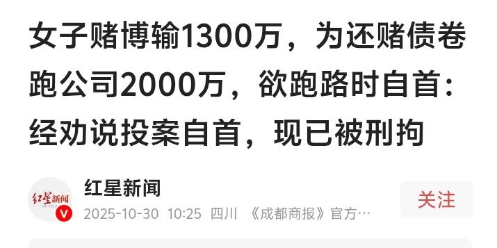 浙江宁波女高管豪赌输光1300万惊世骗局!卷款2000万机场狂奔最后一刻跪地自首 (来源:宁波晚报 /红星新闻 /综合网络平台热帖) 当她拖着行李箱冲向机场安检通道时,手腕上还戴着价值六位数的限量款手表。这个曾在商业宴席上谈笑风生的女强人,此刻正用颤抖的手指刷新着银行卡余额——刚刚到账的800万赃款,正在被疯狂转账填补赌债的黑洞。而海关电子屏上“法定不批准出境”的红色警示,成了压垮她的最后一根稻草。 赌桌前的狂欢与绝望,早已将她的理智撕成碎片。从澳门VIP包厢到东南亚隐秘赌场,她曾在单局下注百万面不改色,也曾跪在放贷人面前磕头求宽限。那些镶着金边的赌场会员卡,如今像烧红的烙铁烫在心头。赌瘾如同附骨之疽,让她在一年内输掉三套豪宅,却仍幻想下一局就能翻盘。 公司会议室里的权杖交接仪式,本是她精心设计的脱身戏码。当新任法人接过公章时,她脸上职业化的微笑掩盖着剧烈心跳。那张2000万存单在保险柜沉睡多年,此刻在她眼中已成救命稻草。银行经理恭敬递来的转账凭证,被她折成纸飞机塞进西装口袋。 “回车取U盾”的谎言如同魔术师的障眼法,她冲出银行时高跟鞋敲击地面的声音,像倒计时炸弹的读秒。出租车后座上,手机连续收到境外催债短信,配图是血淋淋的砍刀。她疯狂操作手机银行时,指甲在屏幕上划出刺耳声响,仿佛能刮掉灵魂上的污垢。 机场广播响起登机提醒的瞬间,她突然看见玻璃幕墙映出的自己——妆容斑驳,眼神涣散,奢侈品围巾像绞索缠在颈间。候机室电视正播放经济犯罪通缉令,当画面闪过某个卷款潜逃者的庭审录像,她手中的登机牌突然重若千钧。 派出所投案室的白炽灯下,她蜷缩在塑料椅上交代作案细节。说到“赌博网站客服曾送我生日蛋糕”时突然崩溃大哭,那些虚拟筹码背后是真实破碎的家庭。民警递来的温水映出她手腕淤青——那是上周被赌场马仔按在牌桌上留下的勋章。 这起案件撕开了跨境赌博的黑色产业链。从线上引流到地下钱庄洗码,从“杀猪盘”话术到暴力催收,每个环节都精准算计着人性弱点。当受害者抵押房产的视频成为赌场“教学案例”,当公司公章变成赌徒的提款工具,这场疯狂游戏早已超出娱乐边界。 网友们在新闻评论区炸开锅。有人痛斥“赌徒不配被同情”,也有人追问“澳门赌场能否追赃”。更现实的警示是:当欲望的闸门被撬开,再稳固的人生堤坝都会溃不成军。那些尚未被发现的“张某”,或许正对着公司账户余额发出粗重喘息。 宁波爆料 (本文综合宁波警方通报、当事人供述及反赌博研究中心数据,为保护当事人隐私使用化名)