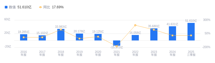 2025年三季度,上海电力营业收入为321.54亿元,行业排名9/28,低于行业第一名华能国际的1729.75亿元、第二名国电电力的1252.05亿元,略低于行业平均数323.49亿元,高于行业中位数164.21亿元。主营业务构成中,电力营收190.22亿元,占比92.90%;热力营收11.23亿元,占比5.49%;其他营收3.3亿元,占比1.61%。当期净利润为51.61亿元,行业排名6/28,低于行业第一名华能国际的194.36亿元、第二名国电电力的122.33亿元,高于行业平均数34.63亿元和中位数22.93亿元。