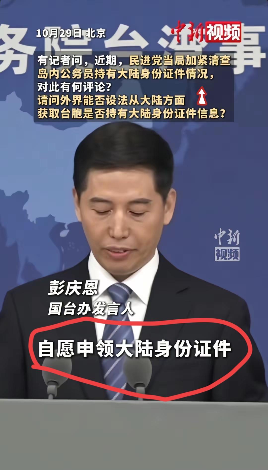 台湾急了!台湾急了 民进党这波清查真是演砸了! 拿着“安全”当幌子,从2024年查公务人员,到2025年连家属都不放过,说白了就是怕两岸同胞走太近,自己的套路玩不下去了。 台胞申领大陆证件明明是合法权利,办个证无非是为了探亲、工作方便,大陆早就把信息保护得严严实实,外界根本拿不到 。可民进党偏要搞“绿色恐怖”,逼得公务员全家提心吊胆,这哪是管安全,分明是侵犯隐私、制造对立。 更讽刺的是,台湾经济、能源一堆问题没解决,当局却把精力全花在挑事上。网友骂得在理,“搞对立倒是No.1”,这种靠撕裂社会维生的操作,根本骗不了人。 说到底,两岸交流是民心所向,一张证件搭起的是便利桥,不是民进党想拆就能拆的。越是清查打压,越暴露他们的心虚,毕竟民心从来不是靠恐吓能留住的。
