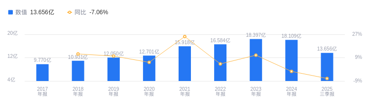 2025年三季度,内蒙新华营业收入为13.66亿元,行业排名9/19。行业第一名皖新传媒营收68.51亿元,第二名中原传媒营收66.2亿元,行业平均数为21.02亿元,中位数为12.41亿元。主营业务构成中,一般图书5.75亿元占比72.79%,教材图书1.72亿元占比21.73%,经营租赁及物业管理2519.87万元占比3.19%,教育装备及文化用品1806.5万元占比2.29%。当期净利润为2.02亿元,行业排名7/19,行业第一名皖新传媒净利润9.63亿元,第二名中原传媒净利润7.79亿元,行业平均数为1.66亿元,中位数为7942.67万元。