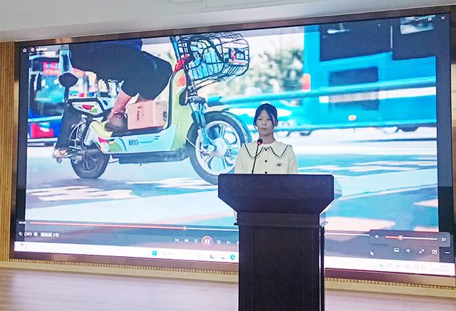 演讲中,选手们紧扣主题,从文明倡导、风险警示、协同共治三大核心内容展开演讲。“文明倡导”环节,选手结合生活见闻,诠释礼让斑马线、规范佩戴头盔、全员系安全带的意义,呼吁以“一盔一带”践行文明出行;“风险警示”部分,援引权威数据强调94%涉学生事故与电动车相关,点出未满16周岁骑行电动车的违法性与危险性,剖析电动车违法、车辆盲区等隐患;“协同共治”环节,选手们言辞恳切,呼吁家校警三方携手,家长示范、学校强教、交警护路,凝聚合力筑牢校园交通安全网。