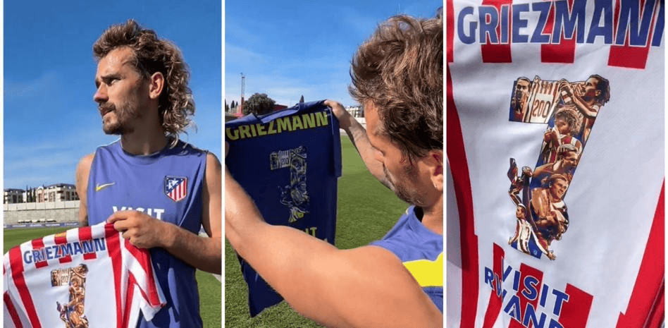 现在,马德里竞技将推出一款基于第一和第二客场球衣的特殊设计,上面印有球员标志性的7号,该号码由他在马竞取得的成就中最具代表性的图像组成。俱乐部分享了一段视频,其中格列兹曼亲自向镜头展示了这些纪念球衣,球迷们将可以在俱乐部的官方商店购买这些商品。在视频中,希门尼斯也出现了,他向格列兹曼问道:"如果我买了,你会给我签名吗?"格列兹曼笑着回答道:"当然!"
