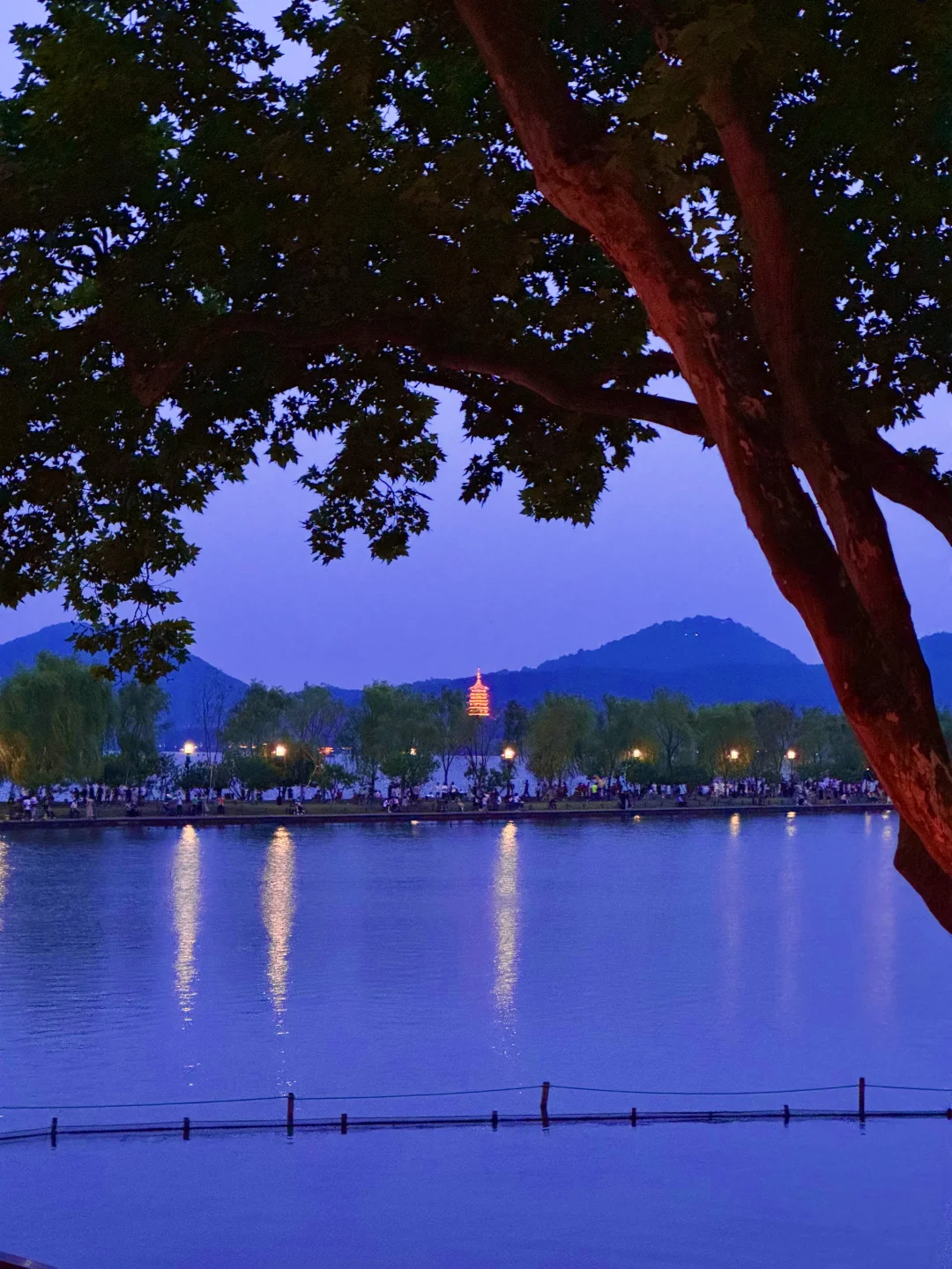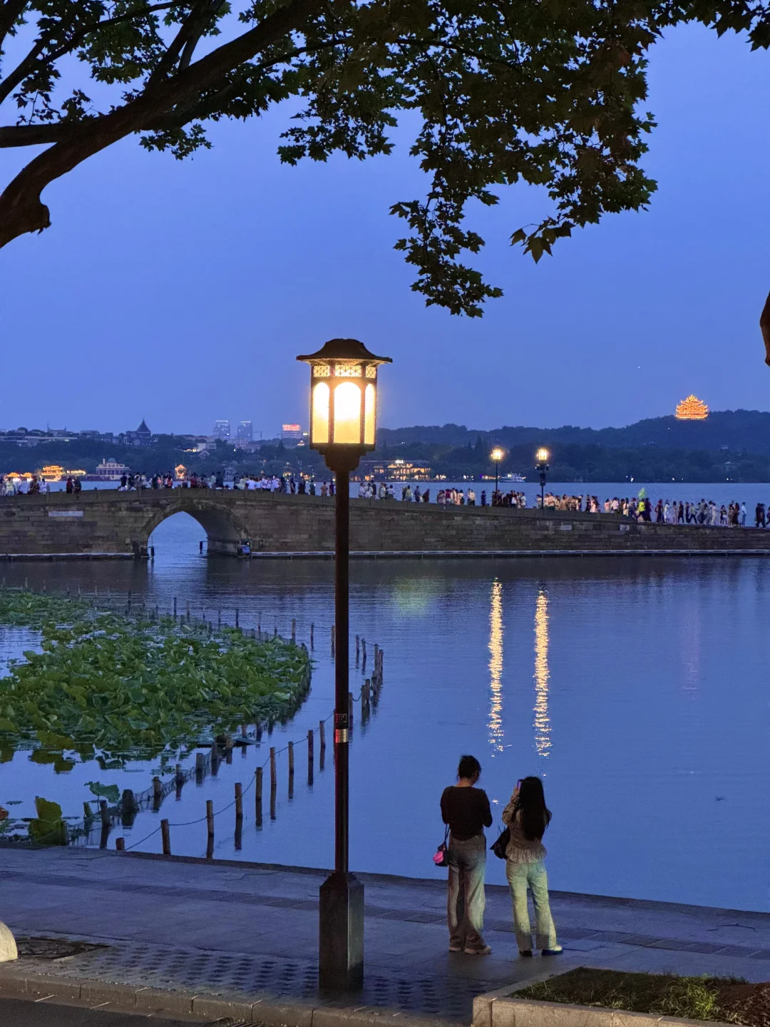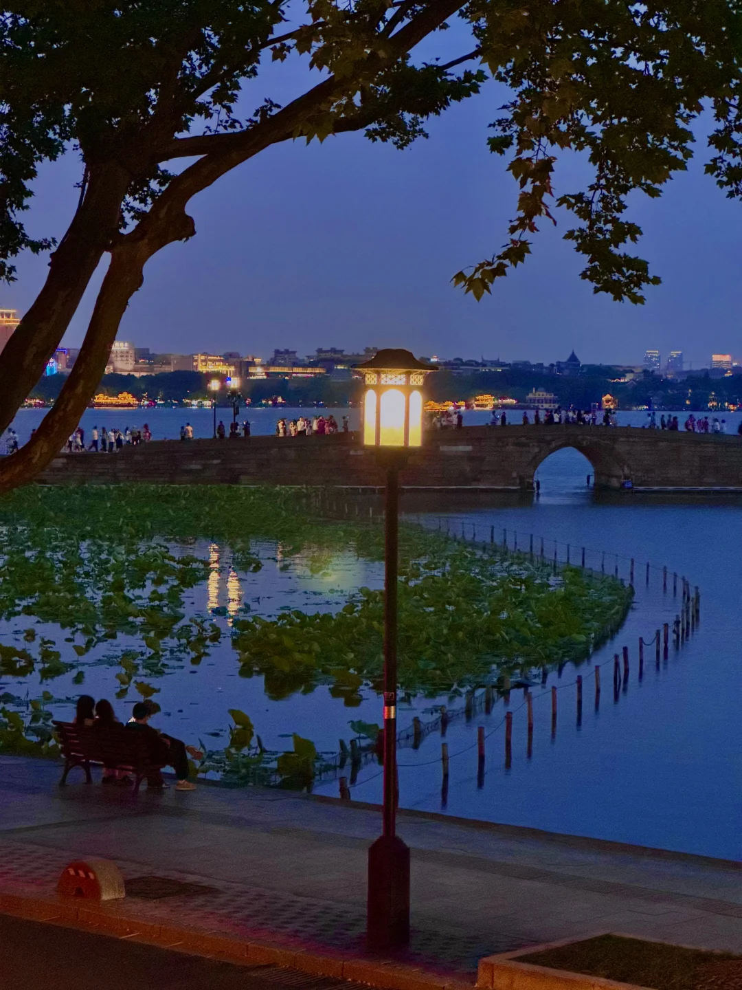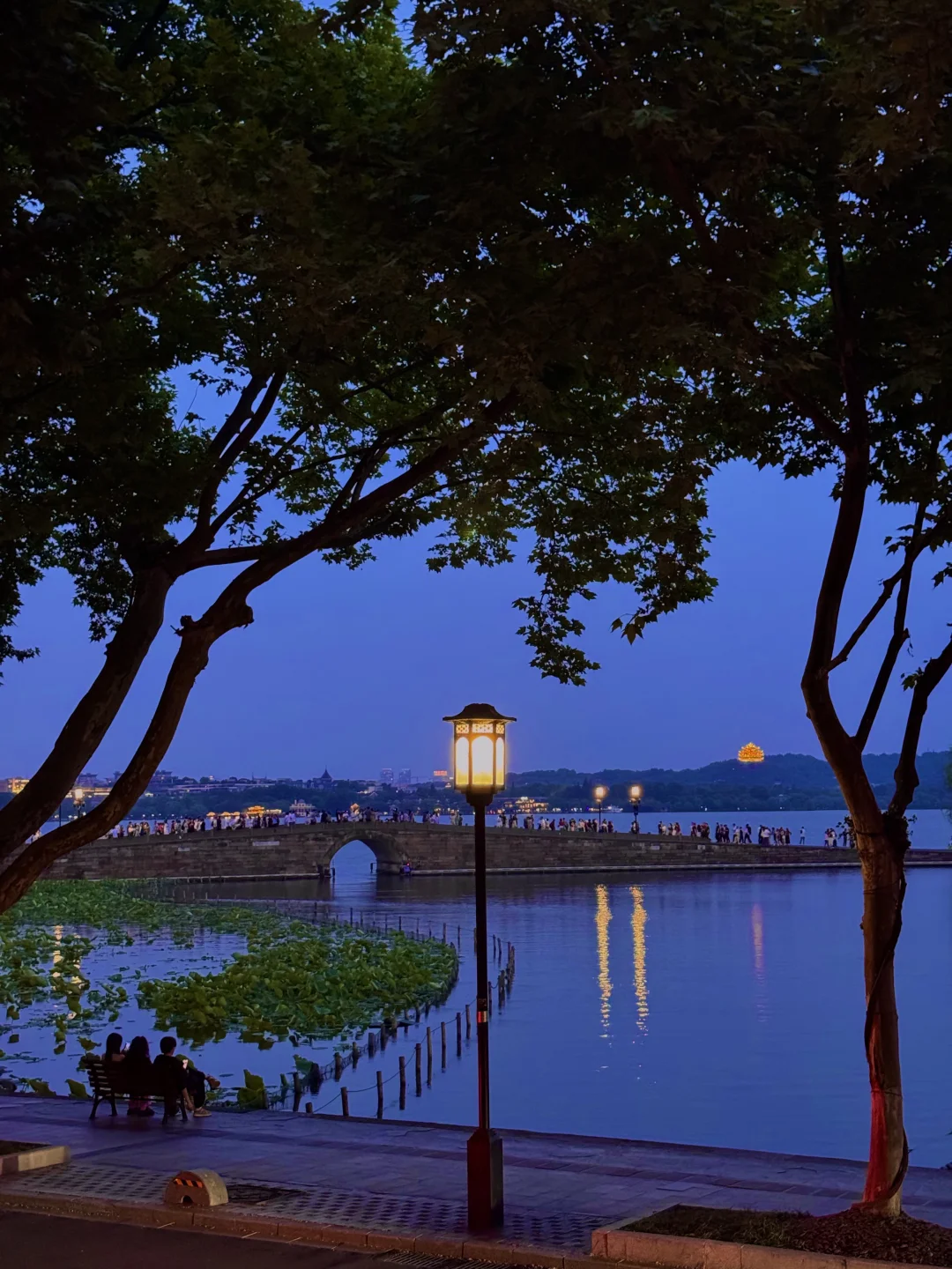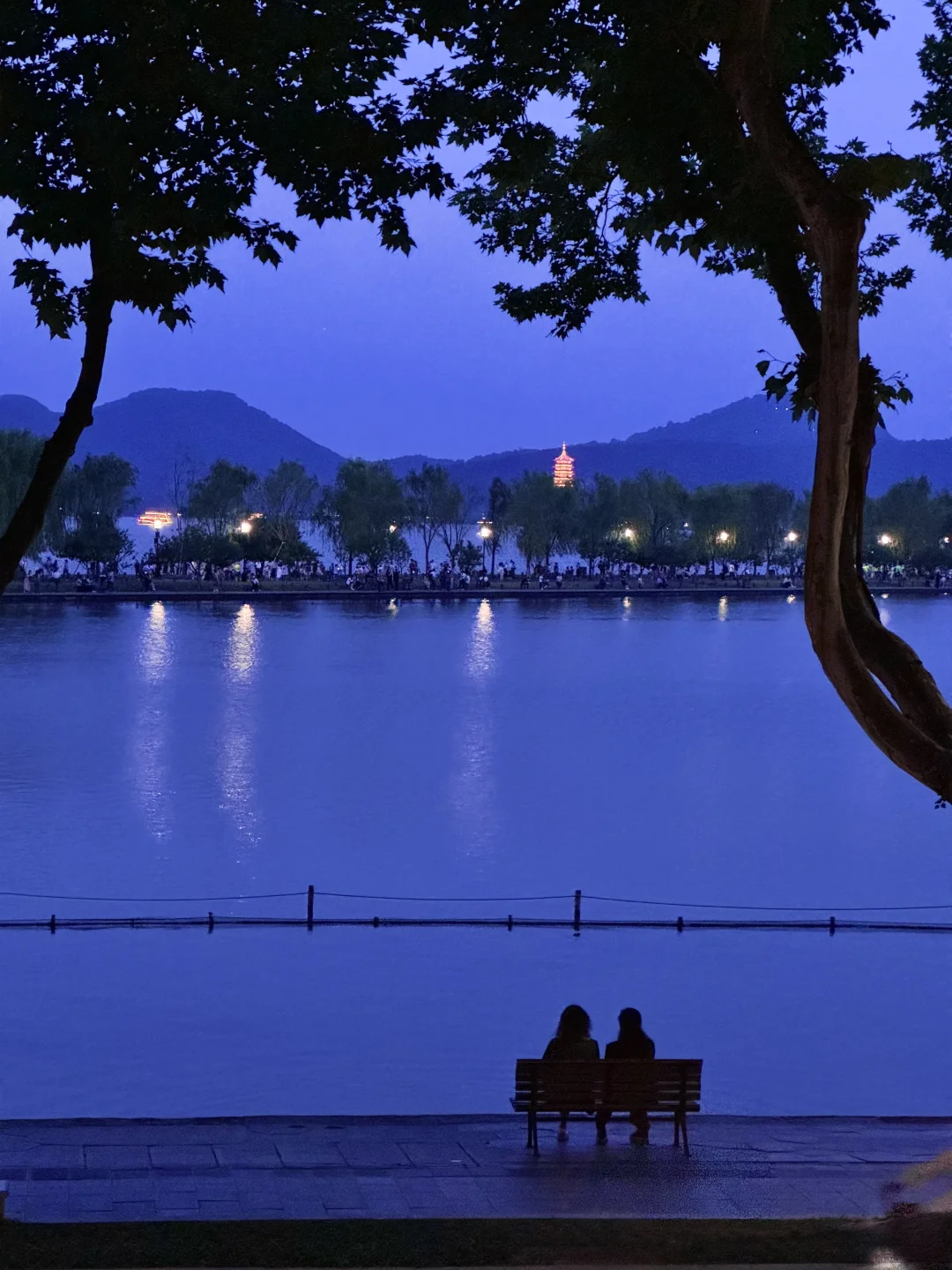 来杭州怎么能错过西湖边的北山街, 这里不止有断桥、白堤、孤山、宝石山、玛瑙寺, 还有数不尽的浪漫等你发现, 日落半小时的蓝调, 西湖边的浪漫藏匿在每一把长椅上, 吹着晚风看天色渐晚, 看着湖光山色真是太舒服了!