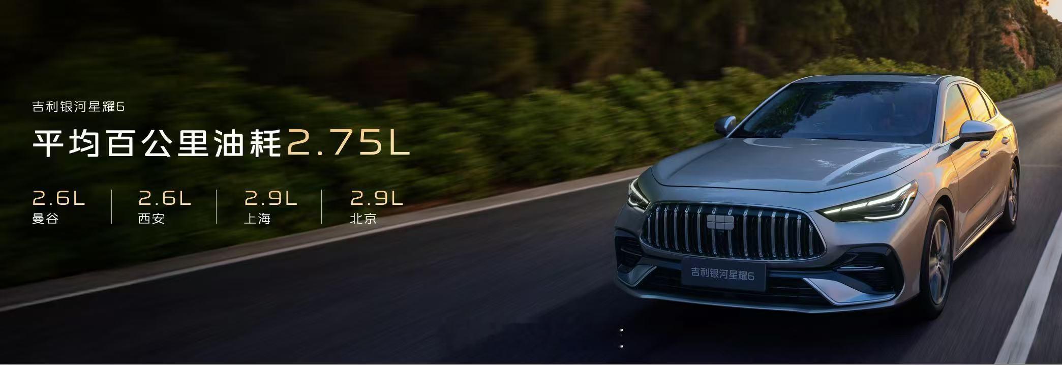 能耗是星耀 6 的一大亮点,据官方公布星耀 6 已经在西安以及泰国曼谷测出了 2.6L-2.9L/100km 的油耗,如果按这台车 52L 的油箱来计算,这台车的 CLTC 续航可以达到 1,700km,一个非常夸张数字,哪怕是打 6 折,也能有超过 1,000 km 成绩,从北京开到上海是没问题,那如果各位想看这台车的油耗实测,可以在评论区许愿,我们找一台星耀 6 给大家按最恶劣的工况给大家测一测,空间方面有待实测,官方说有 B 级车的空间,回头也重点测一下。