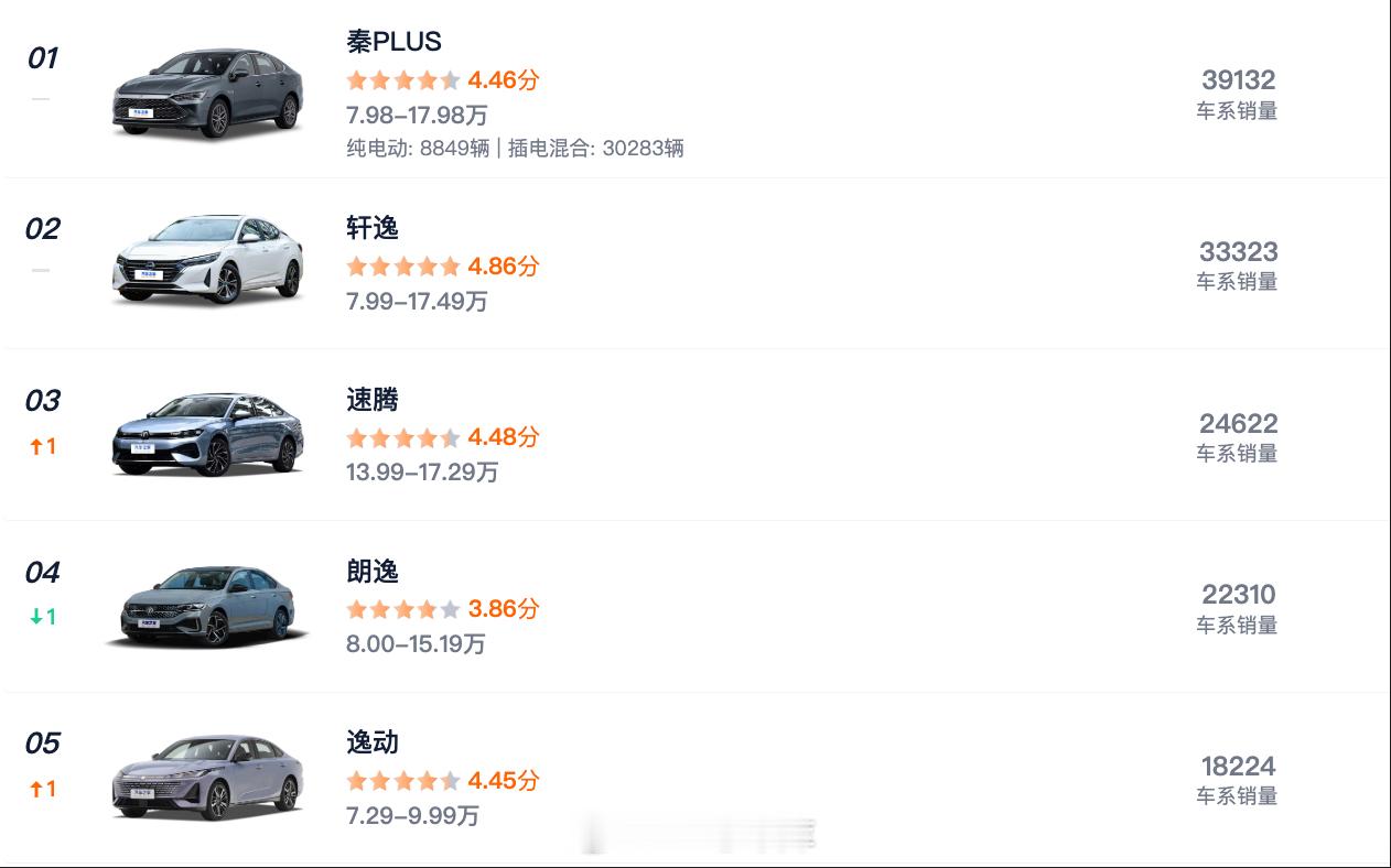 根据汽车之家销量数据显示(详见图 6),9 月份紧凑级轿车市场不限价位的销量前三名分别是秦 PLUS、轩逸、速腾,第一名的秦 PLUS 以 39,132 台位居榜首,其中插混版本的销量为 30,283 台,占据了将近三分之二的销量。如果把前三名的销量一起看,9 月份仅这三款车就有 8.8 万位用户选择了插混或燃油车。所以不难看出,仍有大量用户对「补能」是存在焦虑的,也就是说如果要想从这个市场切走蛋糕,那就必须要有一台可靠、能耗低、空间够用,指导价又能在 6-7 万左右的产品,所以今天吉利再次出牌了,吉利银河星耀 6。