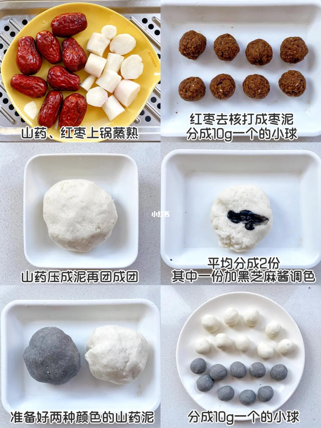 ⚠️山药要选择铁棍山药哦,它的含水量比较少,更加容易成型。如果蒸好的山药实在粘手可以加少量的熟糯米粉或者宝宝米粉、奶粉。