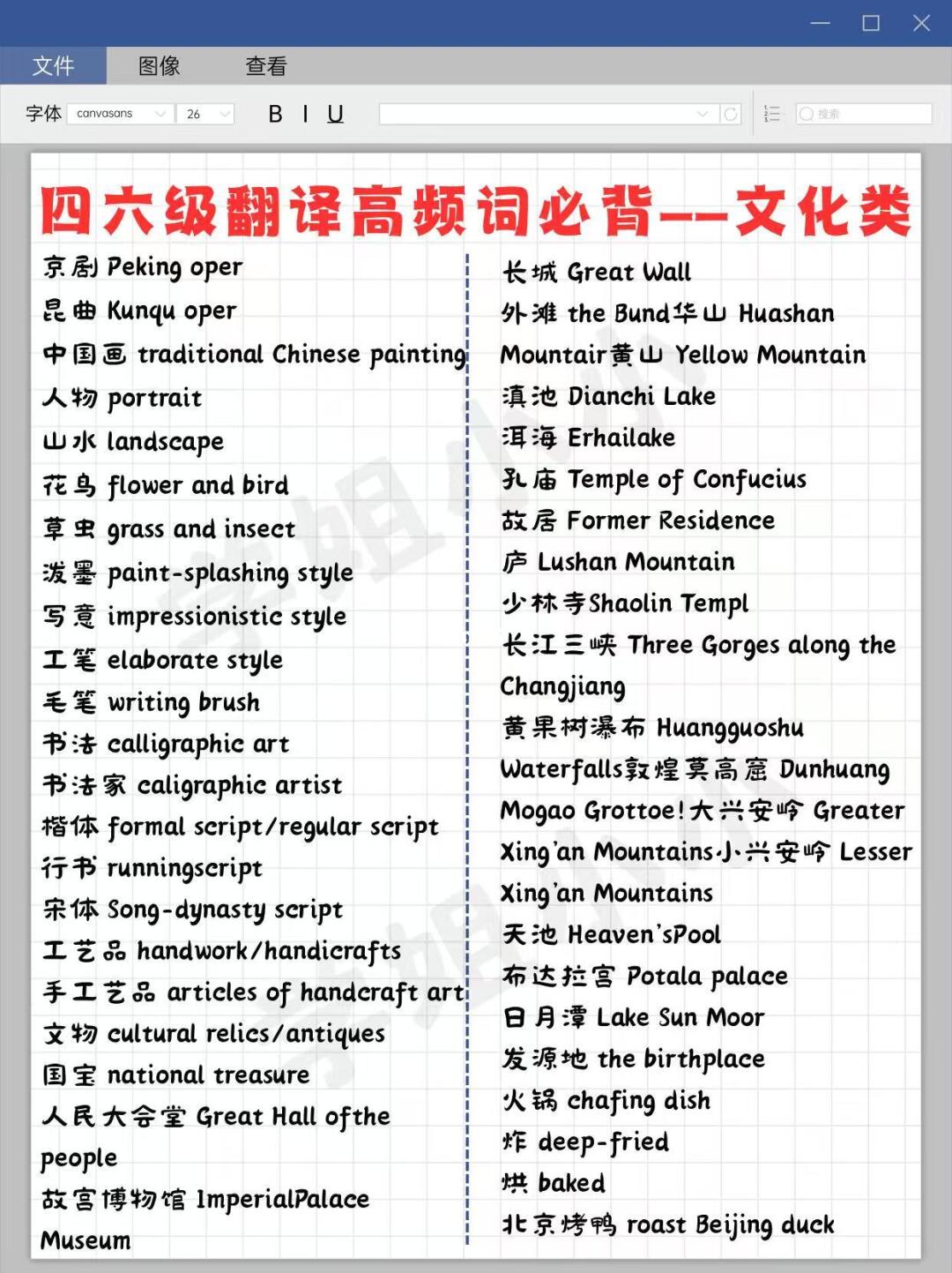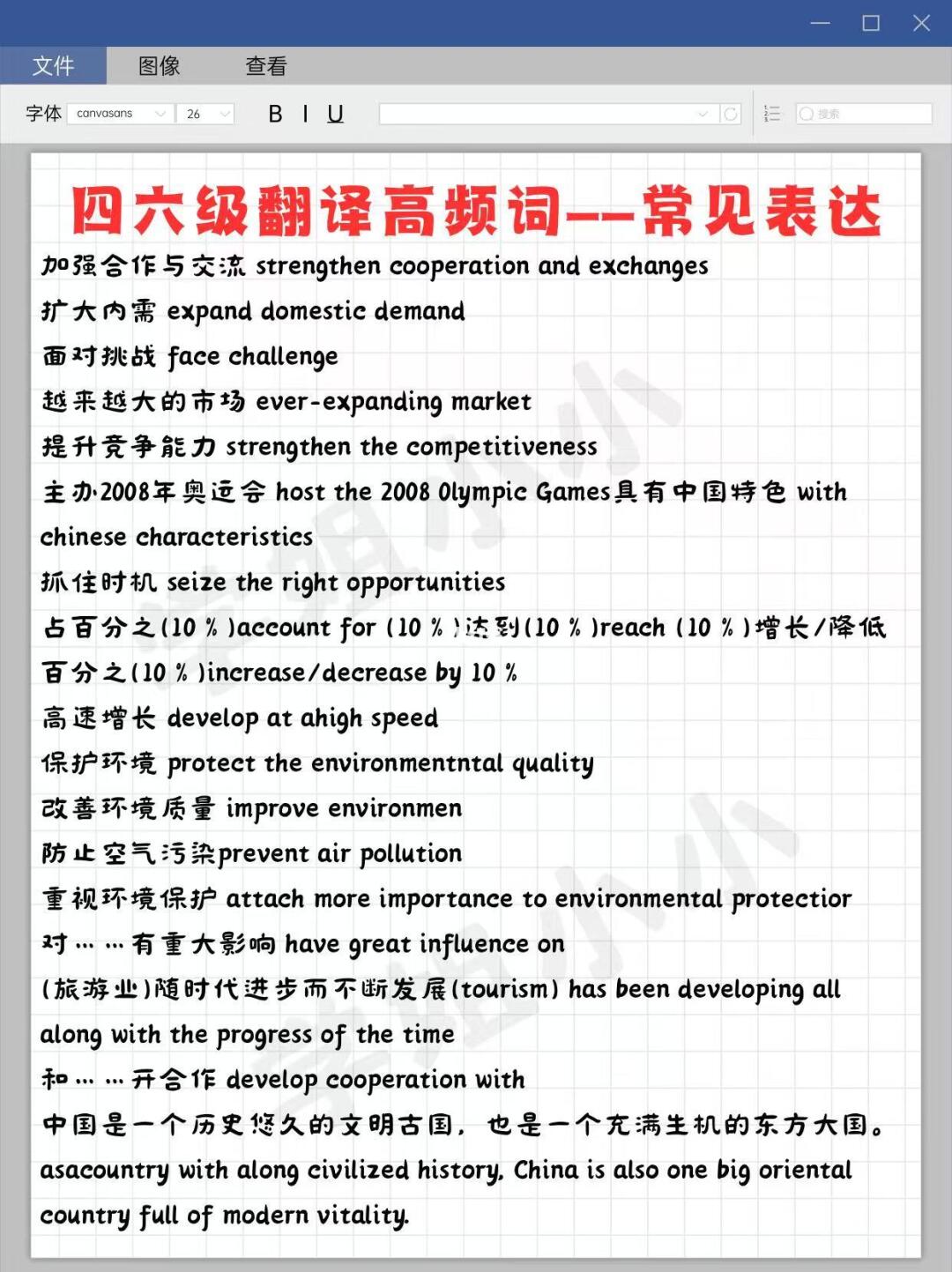 把四/六级级翻译高频词过一遍,大概200个词左右,不要只看,要看着汉语默写对应的英语。翻译不仅要会写,而且要写对。
