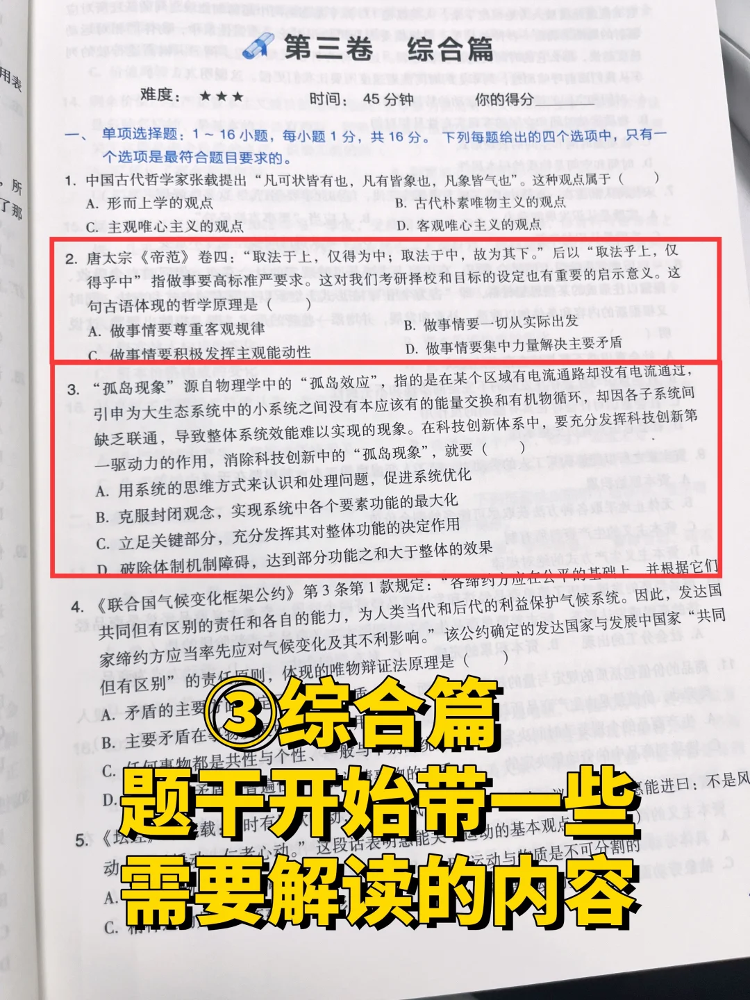 [三R]综合篇:是各个学科的仿真训练,真题难度略高于拔高篇,开始带一些需要解读的内容,需要灵活运用各科知识点