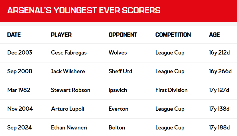目前该纪录由法布雷加斯保持:2003年12月,他在联赛杯对阵狼队时进球,年仅16岁212天。若道曼本赛季破门,他将超越法布雷加斯的纪录,书写新的历史篇章。