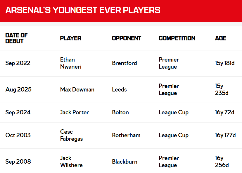 如果道曼在本赛季打进个人首球,他将有望再度刷新纪录——成为阿森纳队史最年轻进球者。