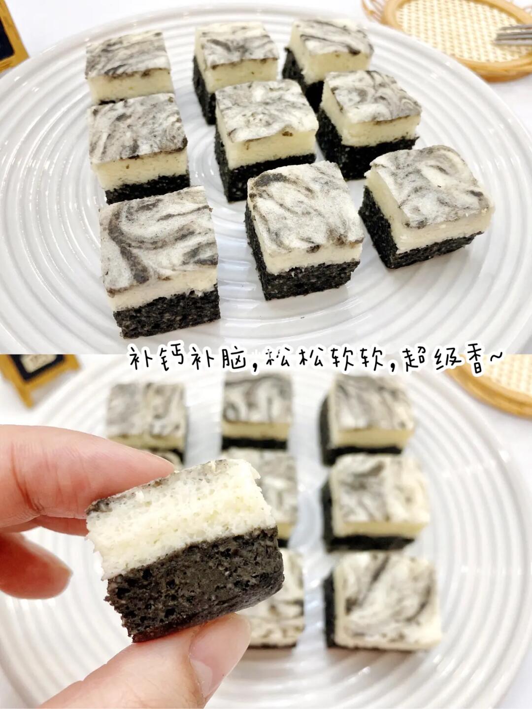 今天分享的黑芝麻山药蒸糕🖤🤍