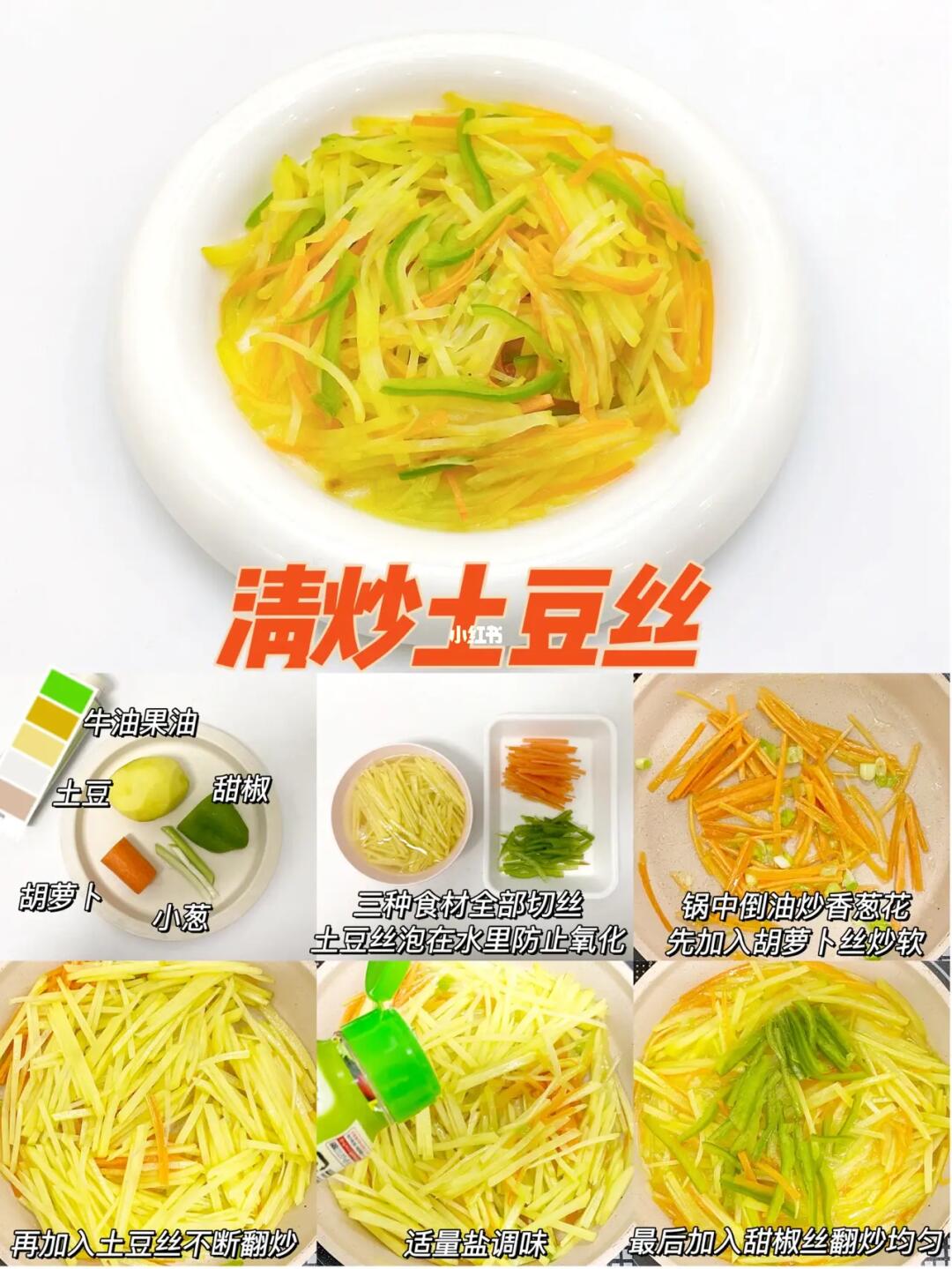 1.土豆胡萝卜甜椒切成细丝,土豆丝泡在水里防止氧化。
