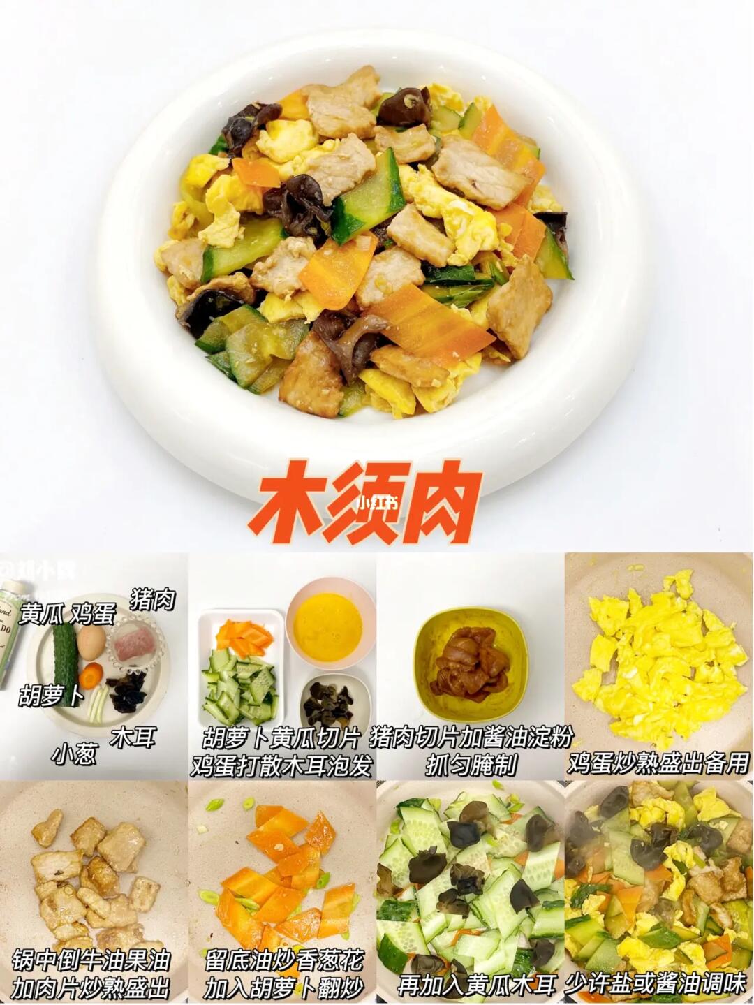 1、猪肉切细丝加淀粉腌制10分钟。配菜全部切适合宝宝吃的细丝。