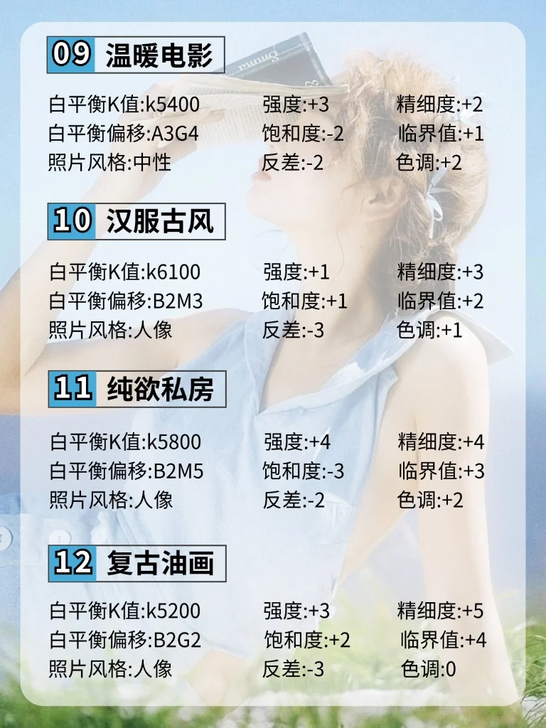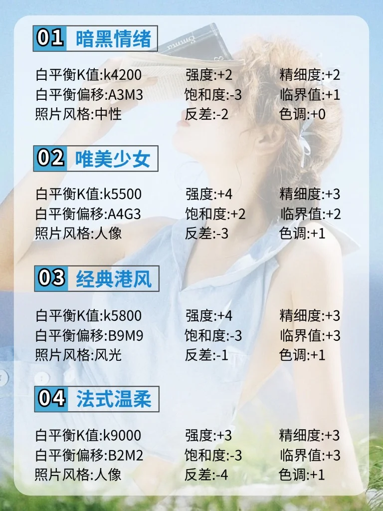 3⃣️饱和度代表画面鲜艳程度,想要画面更鲜艳通透,可以增加1-2档,不想要鲜艳,饱和度减少1-2档。