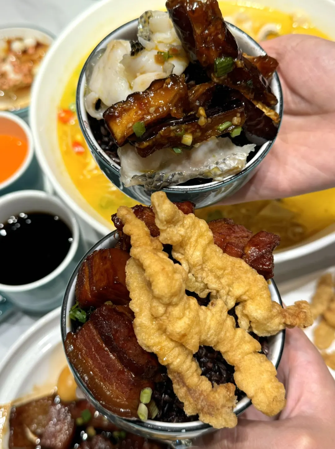 他们居然还有七色糙米饭 不仅健康,还低脂 软软糯糯,香甜可口👍控糖宝宝们的福音~ 鱼香茄子🍆酥香油润,超下饭! 🥘东坡红烧肉 色泽红亮,口感软糯,入口即化!真的很难拒绝~ 🐟招牌青花椒鱼 鱼肉鲜嫩,青花椒的香气浓郁 椒麻过瘾!刺少汤鲜! 棒骨加土鸡每日门店当天现熬四小时汤底,泰鲜啦~
