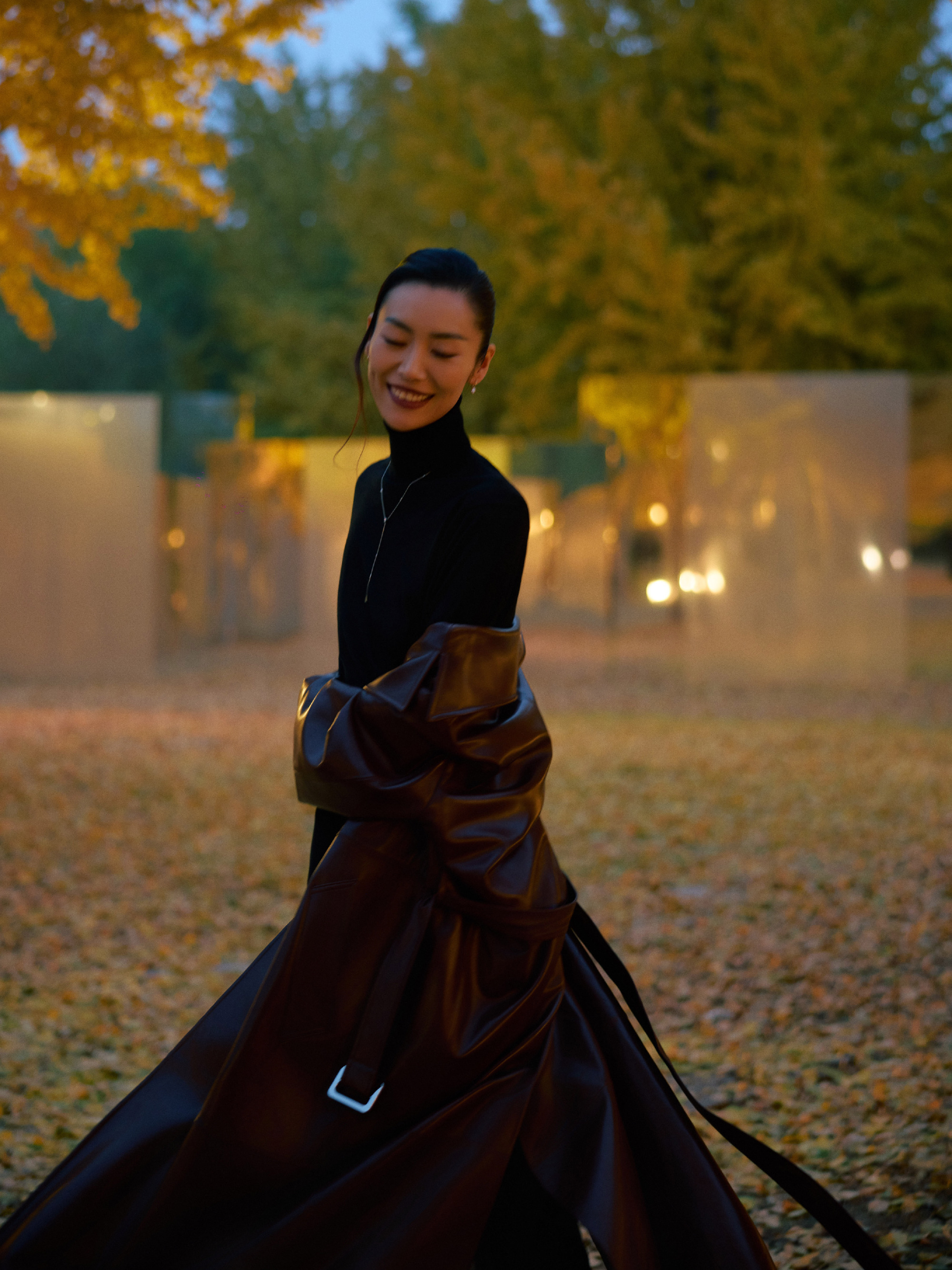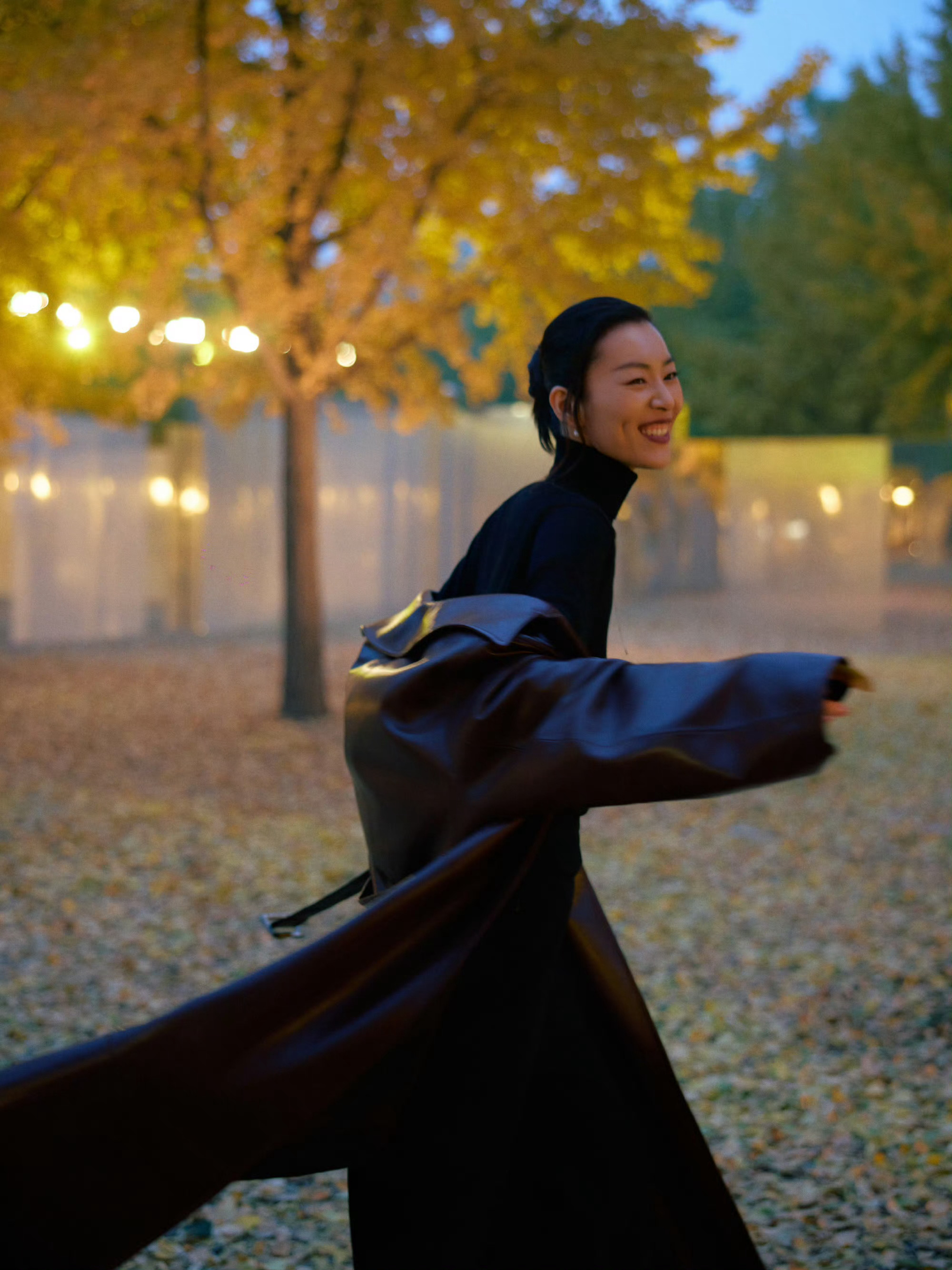 窦靖童穿这一身衣服,再配上一双长筒皮靴,显得很随意松弛又时尚。走起路来,还有几分