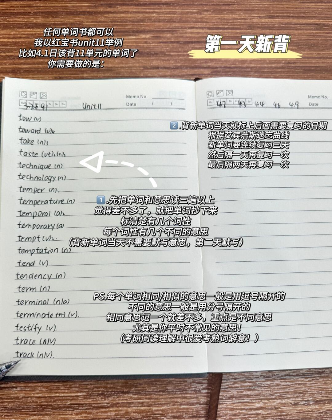 是你能记住更多单词,能记更多单词意思。今天的重点就是如何能牢牢记住考研单词的意思❗❗没有秘诀,只有认真➕不断重复!我把我当时背单词的详细过程又写了一遍给大家做演示,这个方法也是这两年我自己带学生广受好🍎的方法!认真看并认真做的一定会对你有帮助!