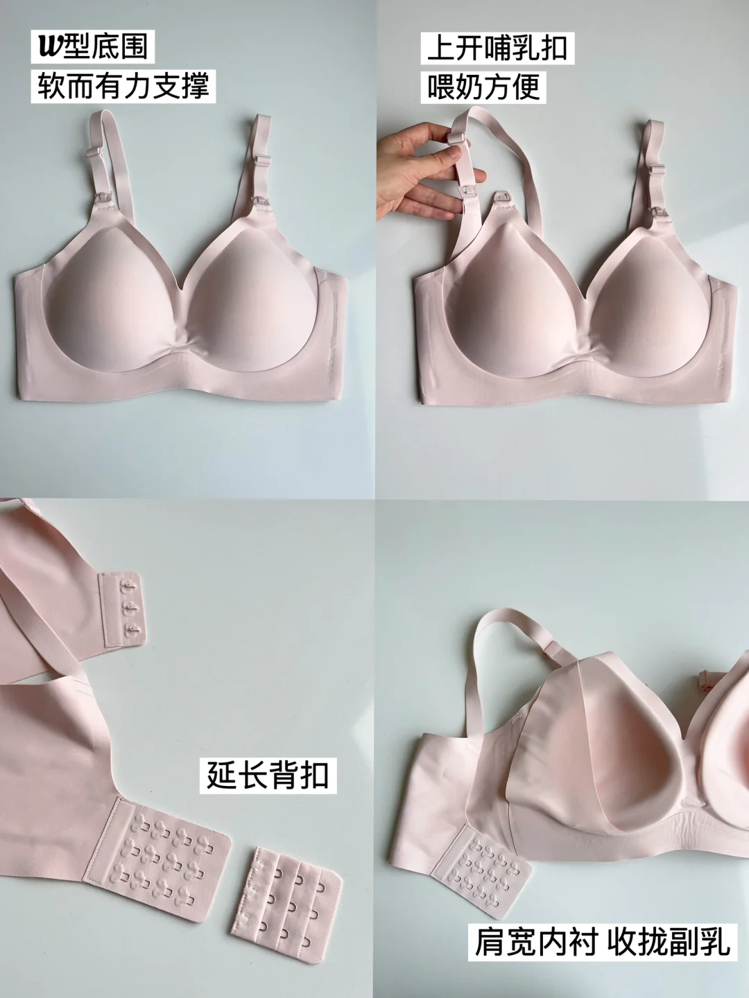 坐上月子二十几天了 身材还在努力修复当中 好多年不穿bra了 怀孕后自带丰胸技能 再加上有哺乳的打算 哺乳内衣内衣的选择就提上了日程 在反复功课后 选择了十月结晶5D零感哺乳内衣 莫兰迪的色系温柔 自带高级感 贴身的衣物舒适感是最重要的 它家仿液态的质感 轻薄又透气 弹力也大 能够延展2-3个罩杯 W型底围 反引力承托 早早预防了下垂 单手解扣的贴心设计 让深夜喂奶也变得方便了很多 哺乳内衣一定要穿上 减轻胸部负担的同时也保证了身材的维持 从孕期到哺乳期 它是始终如一的温柔陪伴 -