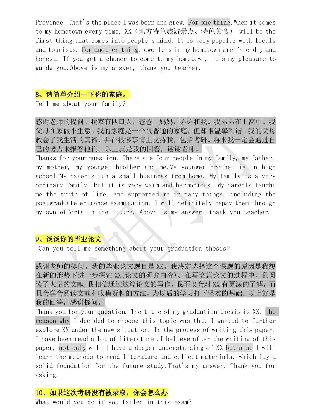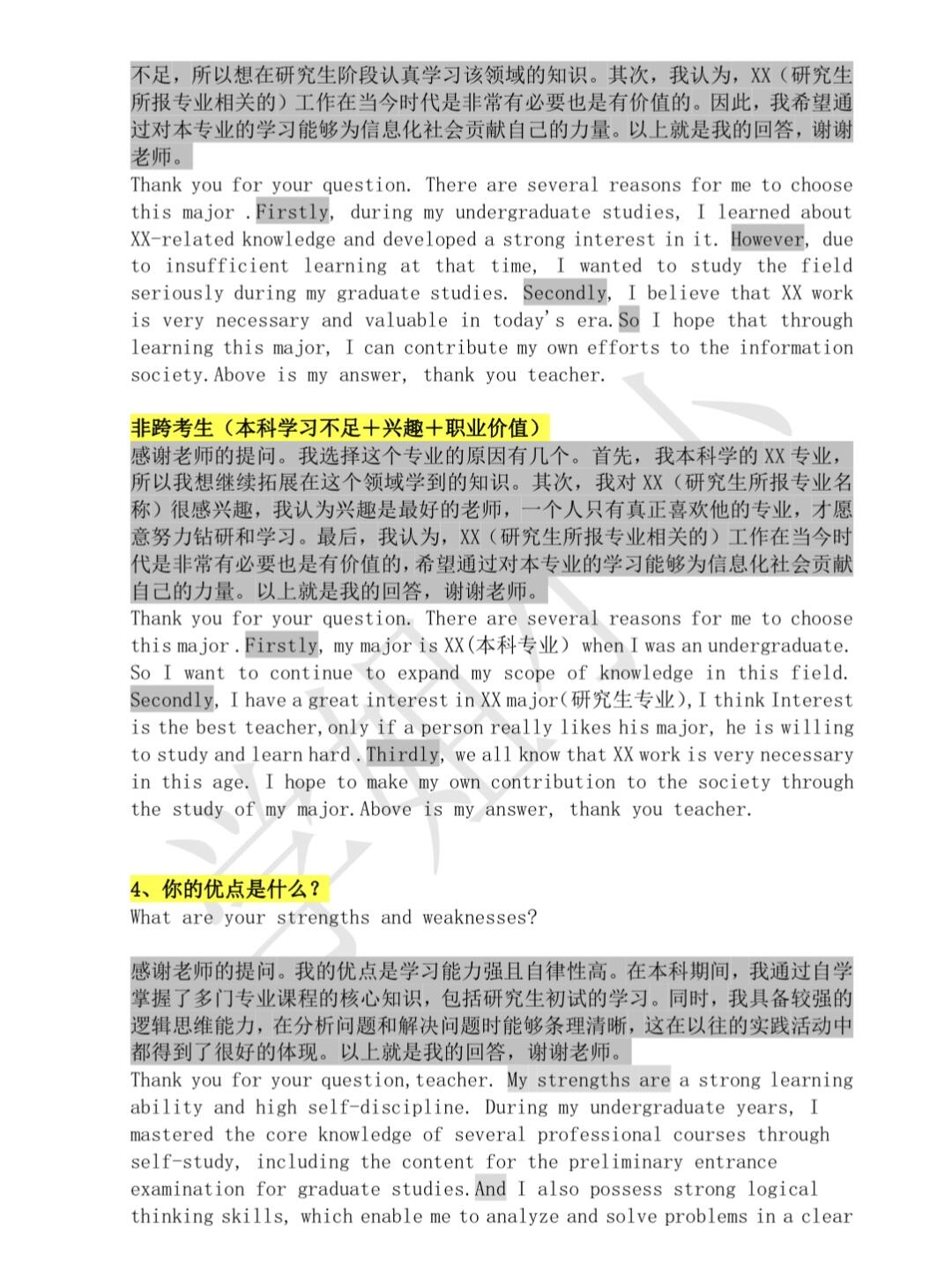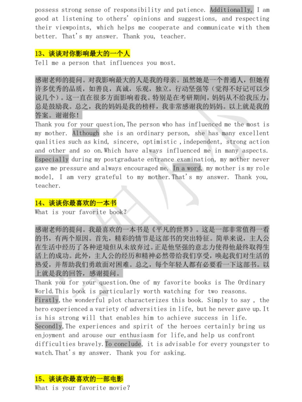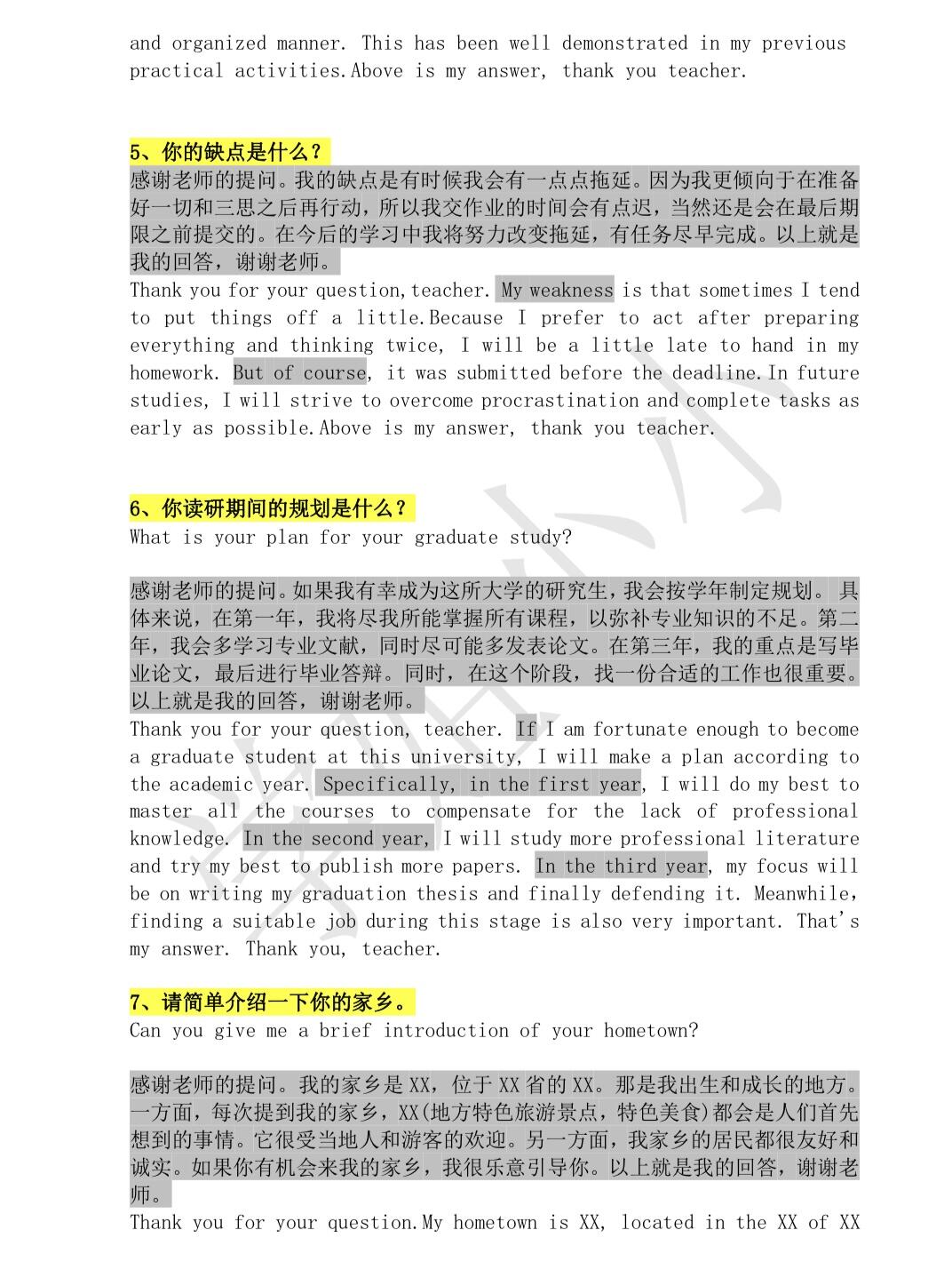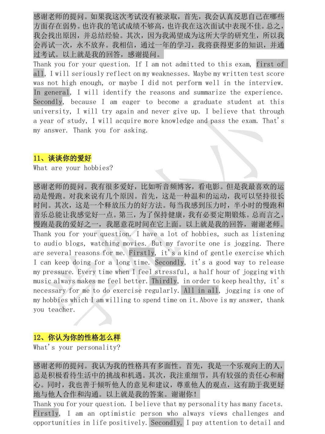 专业课考察的内容可能不一样,但英语口语基本上都差不多,除了你的学校专业课需要根据个人情况修改,很多问题都能通用❗❗