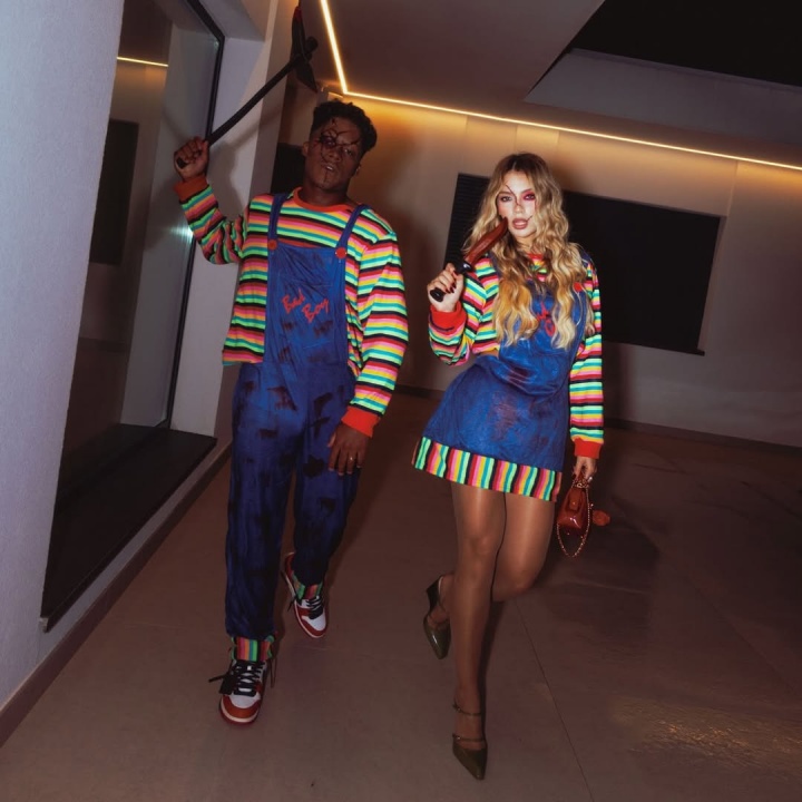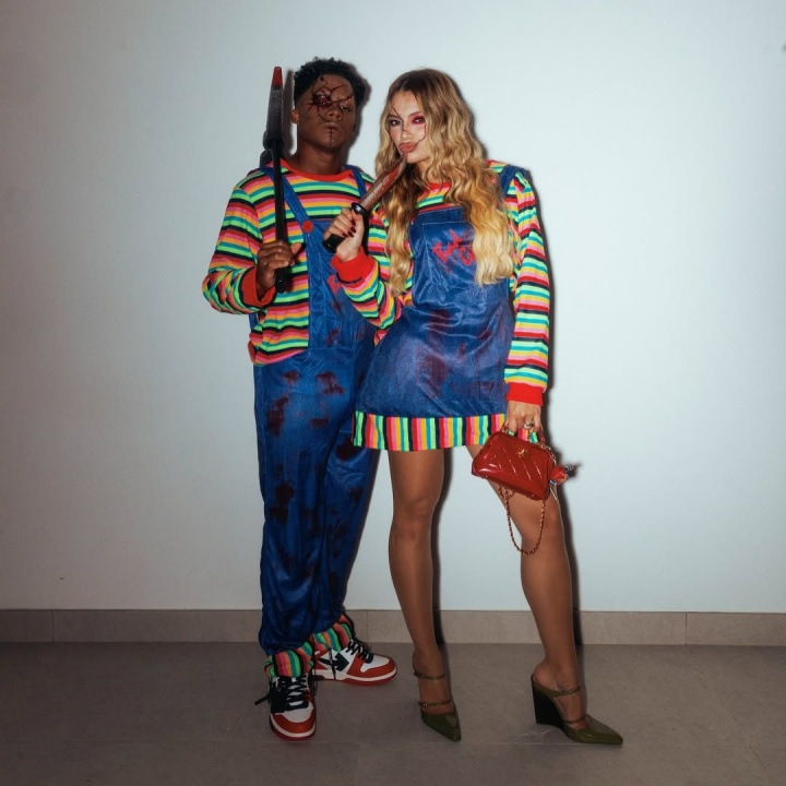 直播吧10月31日讯 皇马前锋恩德里克更新社媒,晒出了他与妻子加布里埃利的万圣节扮相。他们扮演的是恐怖电影鬼娃回魂系列的恐怖公仔Chucky。