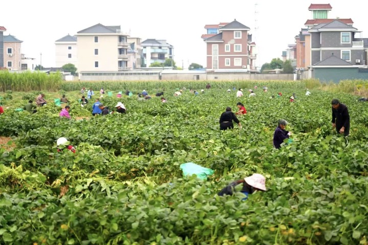 河庄街道毛豆种植面积超50亩的大户有8户,同样也面临着用工问题。河庄街道的工作人员说,整个河庄街道种植毛豆预计总产量高达800吨。自10月下旬进入采收期以来,街道积极帮助发布招工信息,并推动组建起一支支“助农采摘队”。