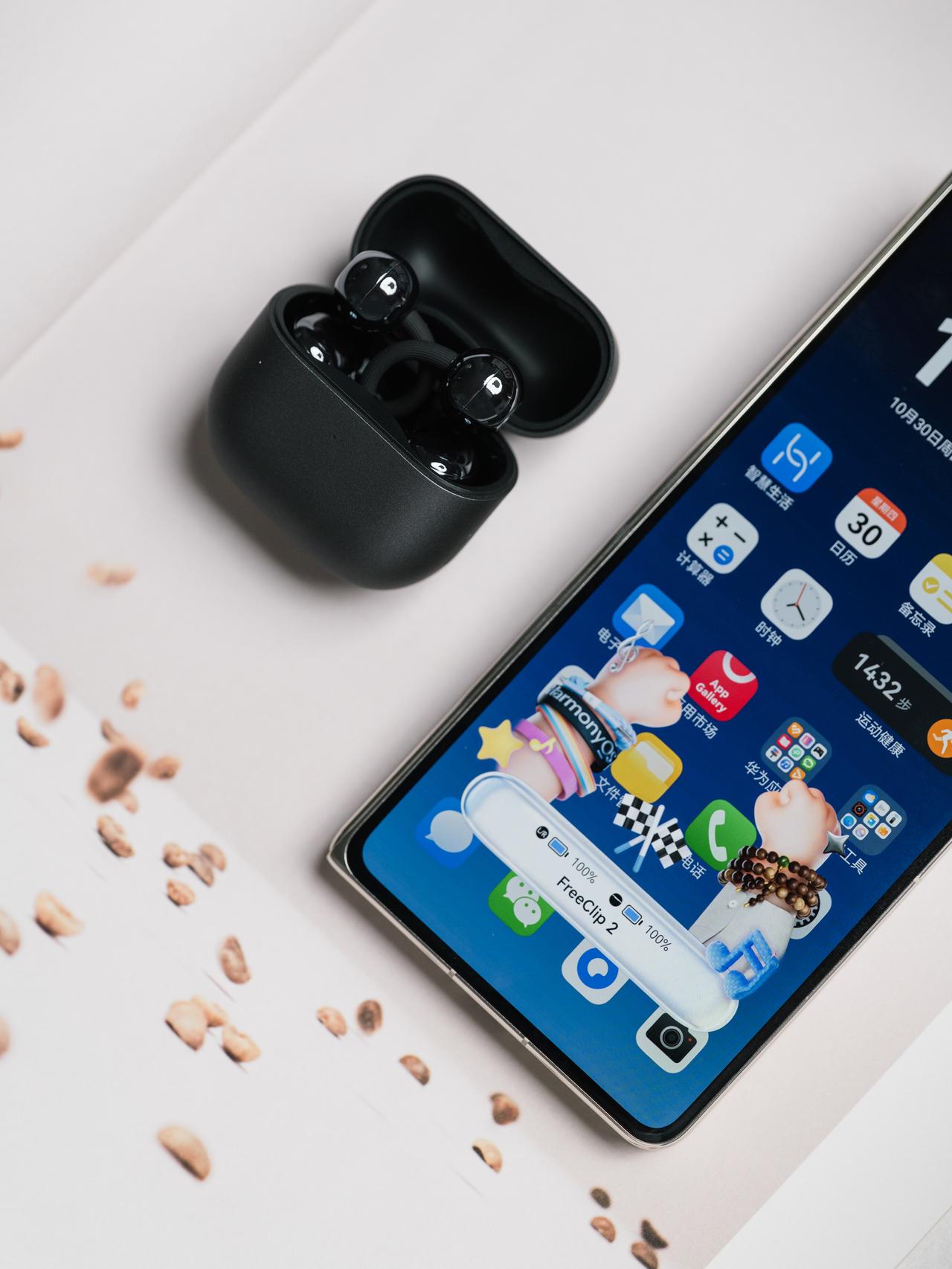 新一代的华为耳夹耳机FreeClip 2,上市之后一度断货,蓝色发货甚至都排到12月去了,真的太火了。 这一代的体积更加小巧,细节上面进一步优化,佩戴更舒适,基本是无感佩戴。C型桥也更耐用。 整体的声音感受也超过预期,非常的舒服好听。在这么一个小体积上面做到这样,华为是真的太有东西了。难怪会那么的受欢迎。 而这个形态,不仅可以舒适无感佩戴,好听,还可以是一个配饰。它的造型也非常的精致。上手了黑色的这个,精致感也是很强的。不过黑色会容易沾灰尘,这一点看各位会不会介意了。 先戴为敬。