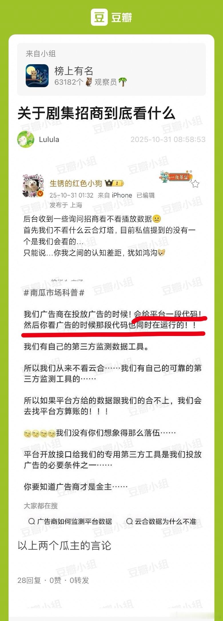 图二我组数据追两年以上的都知道广告商不看云合播放量吧~看热度讨论度正面口碑更多一些。如果平台和广告商很看好一部剧,可能提前就投满了,即便剧扑街~[拜拜]