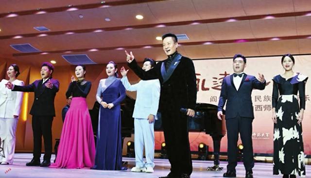 音乐会在阎维文的经典之作《小白杨》中拉开帷幕,熟悉的旋律瞬间点燃了现场气氛。随后,师生们先后演绎了《阿瓦日古丽》《乌苏里船歌》《天路》《想亲亲》等十余首跨越地域、风格多样的中外经典歌曲,展现了民族音乐的博大精深与永恒魅力。