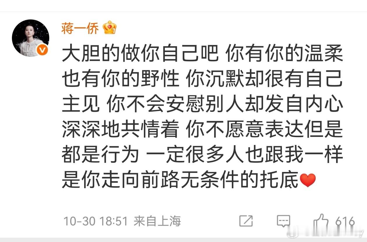 江一燕官宣离婚众女星留言鼓励江一燕在综艺发言中首次公开离婚消息,坦言此前经历“事业停滞”与“自我否定”的双重低谷,婚姻结束是人生重大变故之一。在微博发文:“我有一个小世界,闪耀且自洽,希望你们也在自己的小世界里熠熠星辉。”浪姐的小伙伴都来留言鼓励。